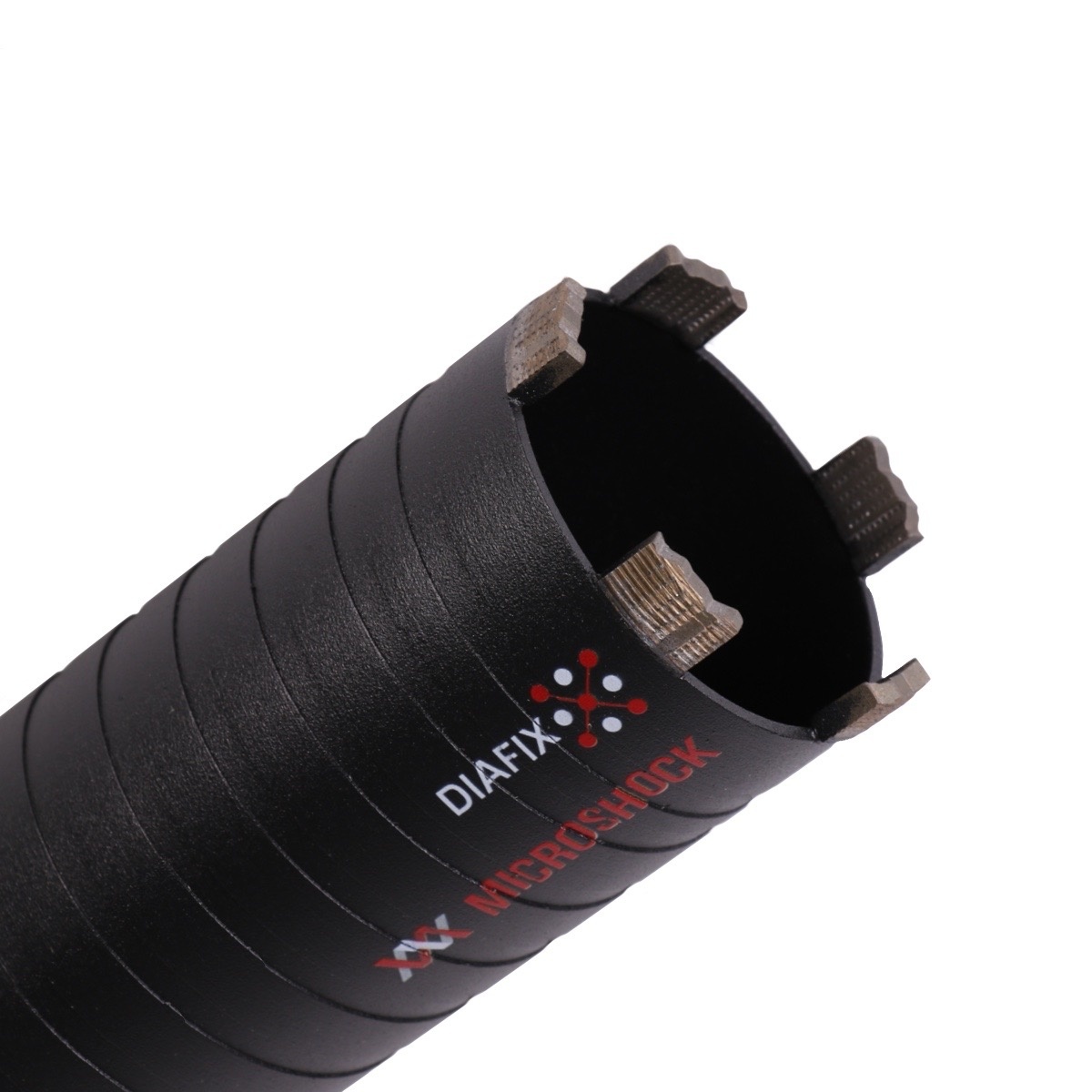 Carota diamantata RS-TX segment turbo pt. beton armat diam. 72 x 300 (mm) - Premium - DiStar Calitate : Premium - calitate foarte buna - durata de exploatare foarte buna Pentru : beton si beton armat (ranforsari de pana la max. Ø20mm) Gaurire : uscata sau cu apa Utilizare: masini de carotat Descriere: Carota diamantată RS-TX este proiectată pentru găurirea de mare viteză a materialelor complexe și durabile, precum betonul armat , în regim uscat (fără răcire cu apă). Utilizează segmenți unici DiaFix cu diamant orientat și dispune de o formă turbo și o legătură productivă pentru a asigura o găurire rapidă și eficientă , în special atunci când răcirea cu apă nu este posibilă. Canelurile speciale de pe corpul carotei ajută la evacuarea eficientă și rapidă a prafului și a materialului rezultat. Viteză și durabilitate excepționale la găurirea betonului armat , reușind chiar să taie armătura pe lungime fără blocare (demonstrat pe beton de grad B45). Durată de viață ridicată de până la 15 metri liniari de găurire (depășind semnificativ durata de 5-7 metri obișnuită). Carota este destinată utilizării pe mașini de găurit manuale cu micro-percuție. Conexiune: filet 1 ¼” UNC Diametru carota: 72mm Lungimea activa a carotelor: 300mm Numar segmenti: 5 Viteza de gaurire: 5/6 Durata de viata 4.5/6