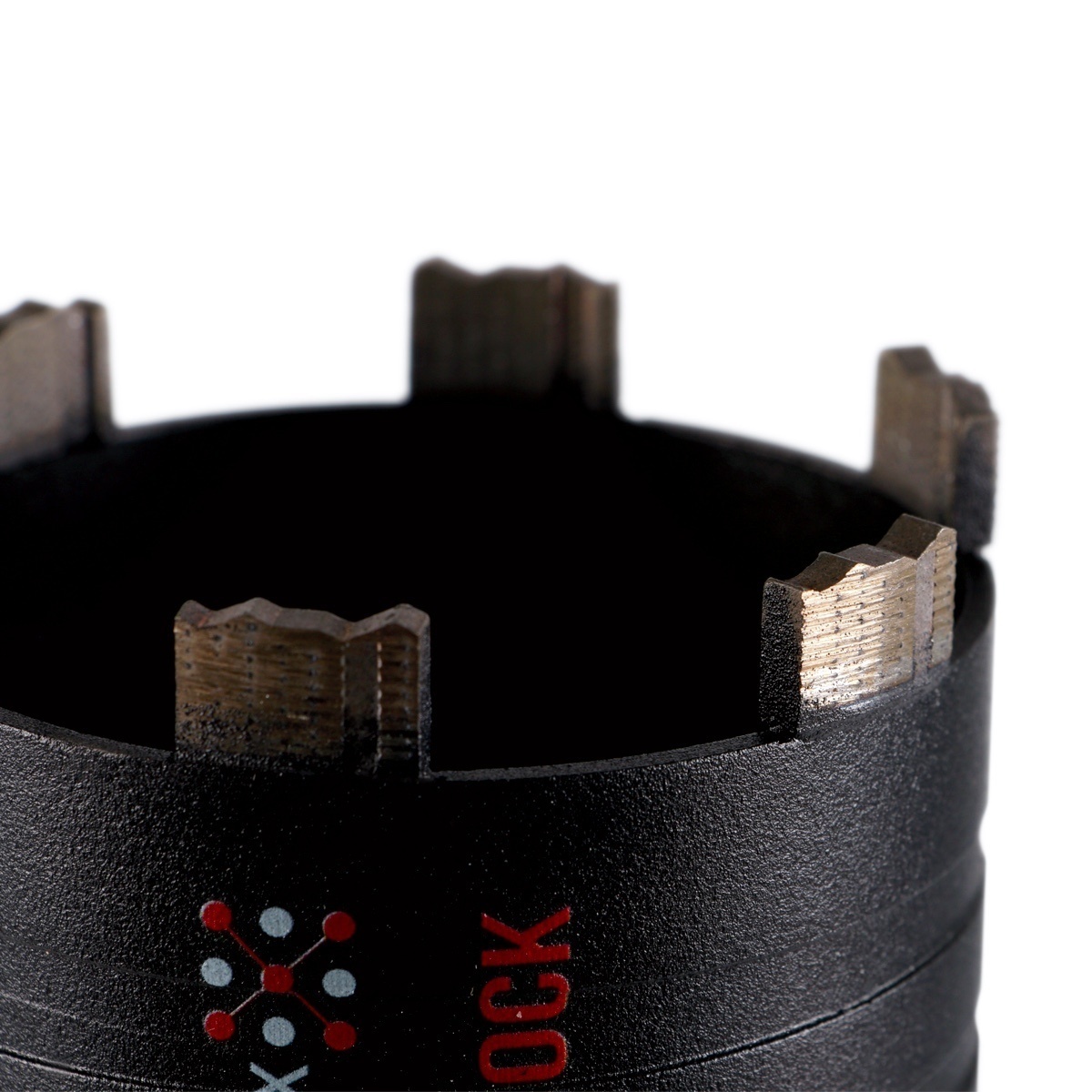 Carota diamantata RS-TX segment turbo pt. beton armat diam. 92 x 300 (mm) - Premium - DiStar Calitate : Premium - calitate foarte buna - durata de exploatare foarte buna Pentru : beton si beton armat (ranforsari de pana la max. Ø20mm) Gaurire : uscata sau cu apa Utilizare: masini de carotat Descriere: Carota diamantată RS-TX este proiectată pentru găurirea de mare viteză a materialelor complexe și durabile, precum betonul armat , în regim uscat (fără răcire cu apă). Utilizează segmenți unici DiaFix cu diamant orientat și dispune de o formă turbo și o legătură productivă pentru a asigura o găurire rapidă și eficientă , în special atunci când răcirea cu apă nu este posibilă. Canelurile speciale de pe corpul carotei ajută la evacuarea eficientă și rapidă a prafului și a materialului rezultat. Viteză și durabilitate excepționale la găurirea betonului armat , reușind chiar să taie armătura pe lungime fără blocare (demonstrat pe beton de grad B45). Durată de viață ridicată de până la 15 metri liniari de găurire (depășind semnificativ durata de 5-7 metri obișnuită). Carota este destinată utilizării pe mașini de găurit manuale cu micro-percuție. Conexiune: filet 1 ¼” UNC Diametru carota: 92mm Lungimea activa a carotelor: 300mm Numar segmenti: 6 Viteza de gaurire: 5/6 Durata de viata 4.5/6