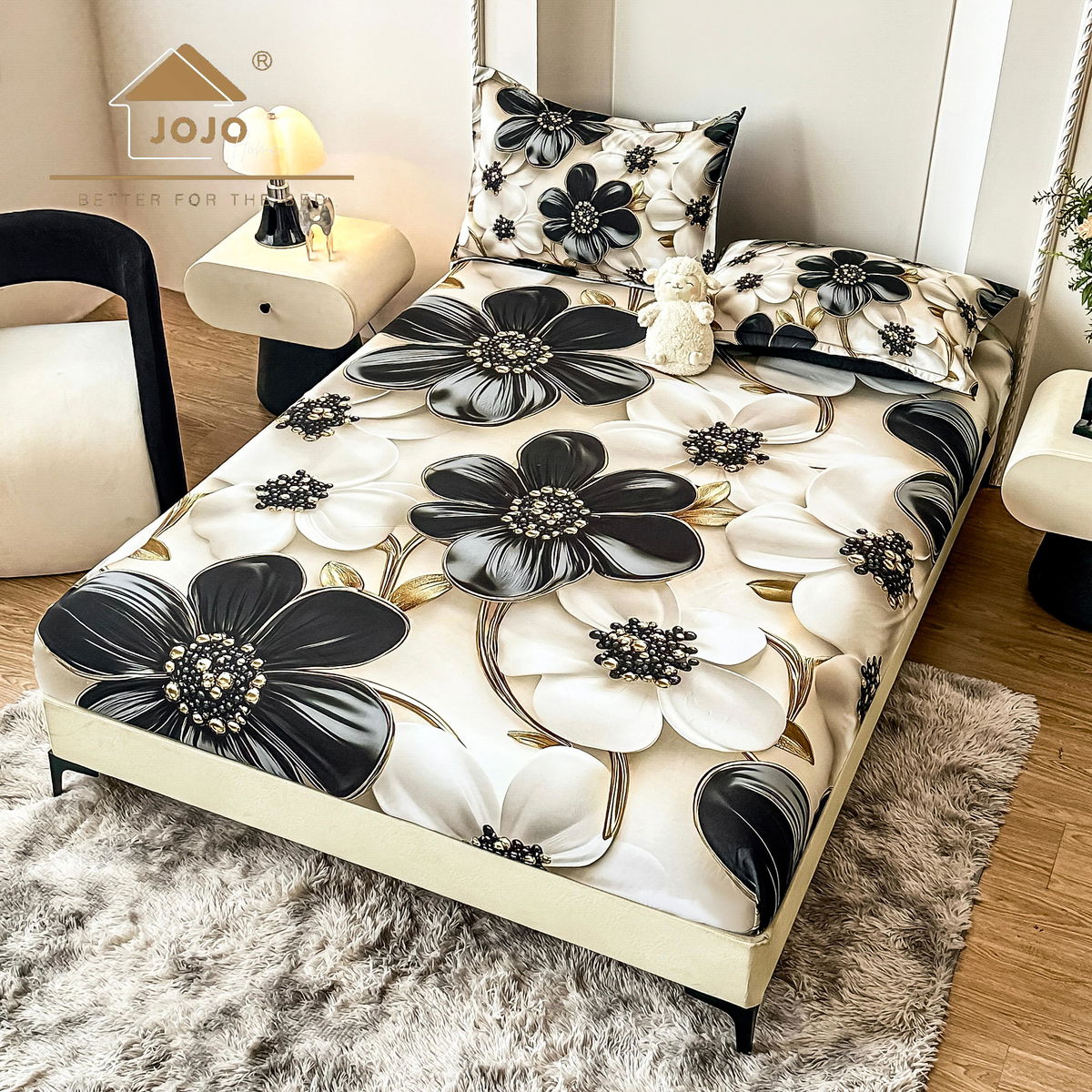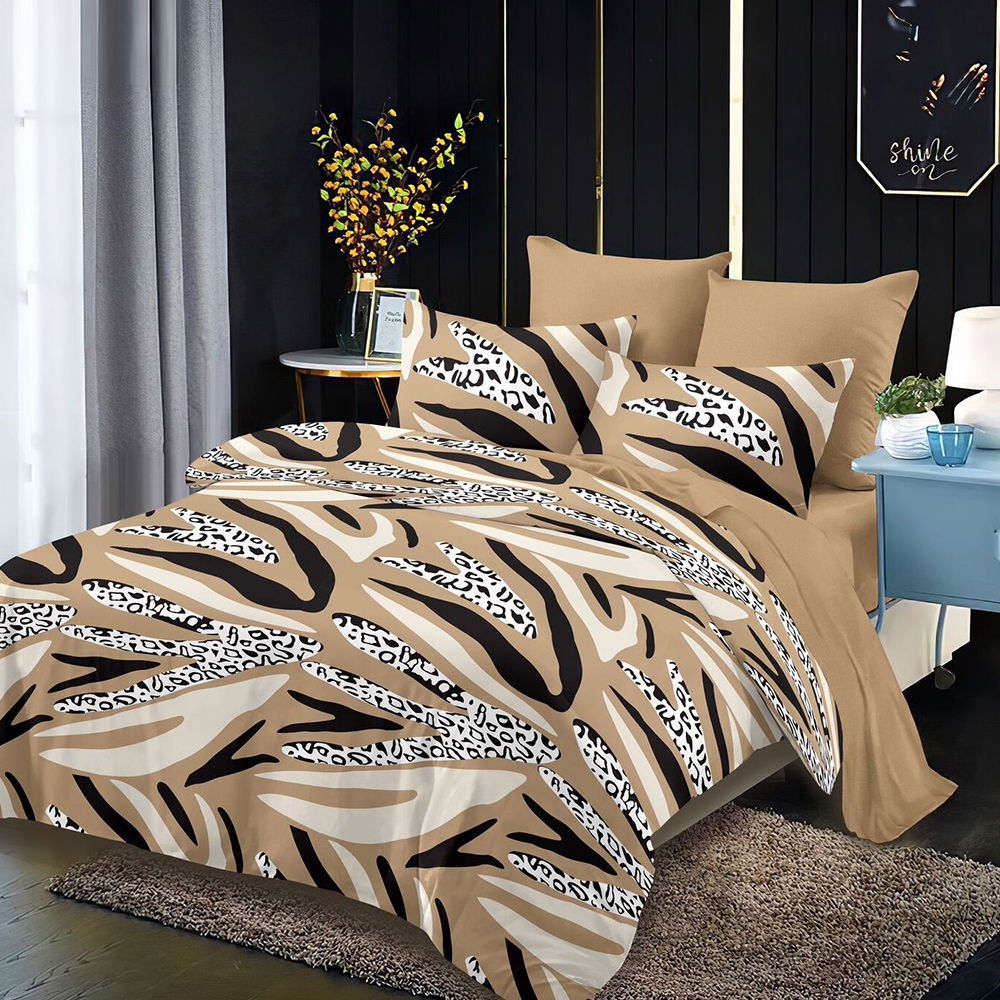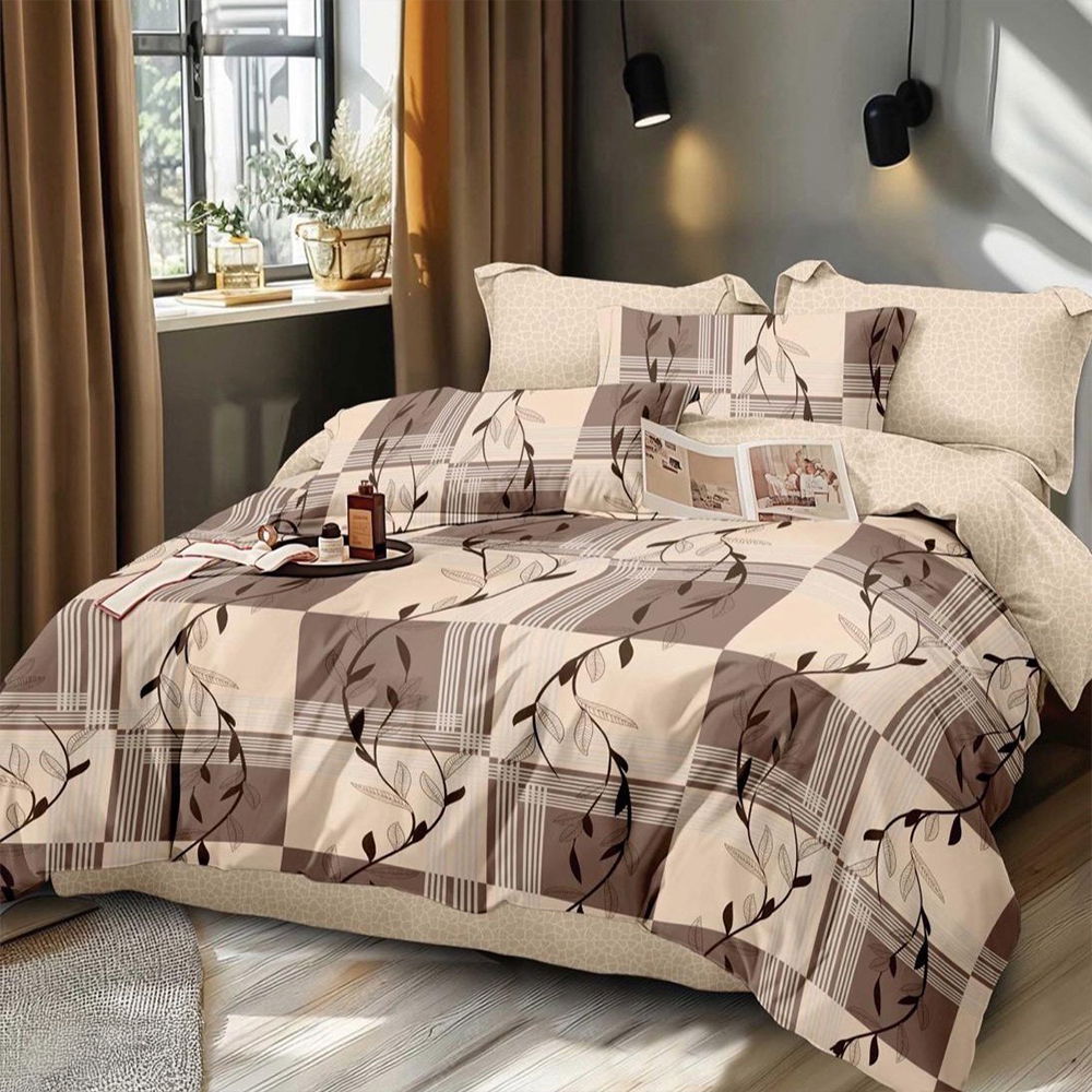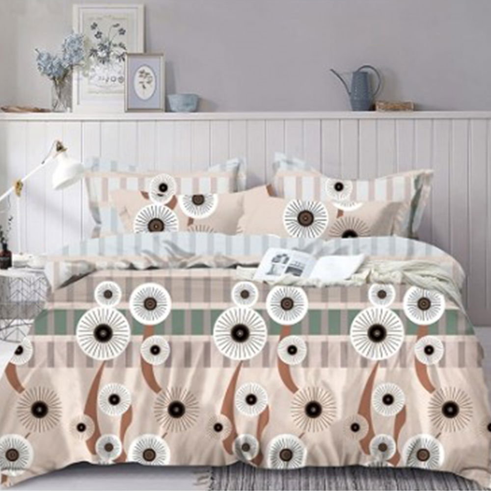 SET CEARCEAF CU ELASTIC DIN BUMBAC SATINAT + 2 FEȚE DE PERNĂ Setul format din cearceaf cu elastic și 2 fețe de pernă reprezintă alegerea ideală, dacă ești în căutarea unui set de lenjerii care să stea fix pe patul tău matrimonial. Cele 3 piese sunt confecționate din bumbac satinat de calitate superioară, foarte plăcut la atingere. Conțin un amestec optim de bumbac și microfibră, iar datorită jocului de culori deosebit, vor aduce un plus de eleganță și rafinament dormitorului tău!COMPOZIȚIA LENJERIEI: Compoziția lenjeriei este de 60% bumbac și 40% microfibră. Materialul este de calitate superioară, foarte rezistent și ușor de întreținut. CONȚINUTUL LENJERIEI: Acest set conține 3 piese: 1 cearceaf de pat cu elastic potrivit pentru saltea cu înălțime de până la 25 cm (dimensiuni:180x200 cm +/- 5cm) și 2 fețe de pernă (dimensiuni: 52x80 cm +/- 5cm).ÎNTREȚINEREA LENJERIEI: Lenjeria se spală la max. 40°C și se calcă la max. 130°C. Pentru rezistență sporită, nu recomandăm spălarea cu înălbitori chimici.  NOTĂ: Pozele afișate sunt cu titlu de prezentare și au scop comercial. Pot exista mici diferențe de nuanță și de încadrare a imprimeului. Dimensiunile pot varia cu ±5cm.