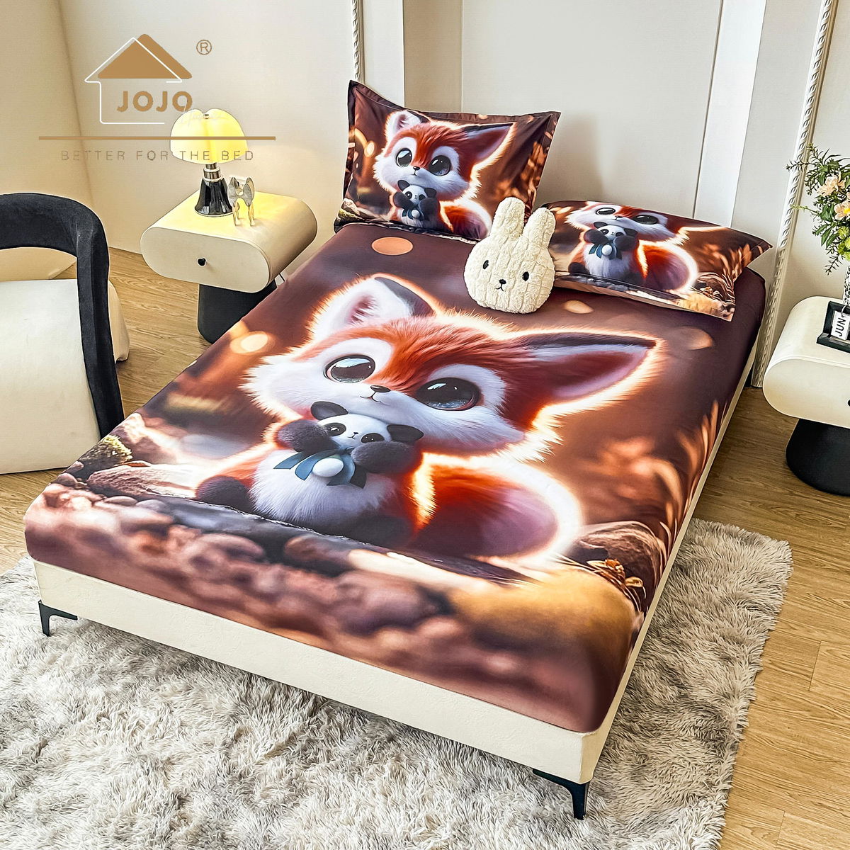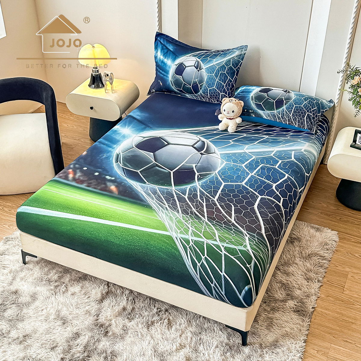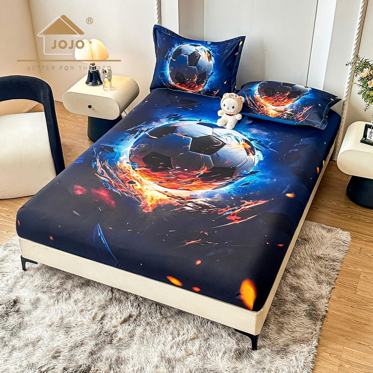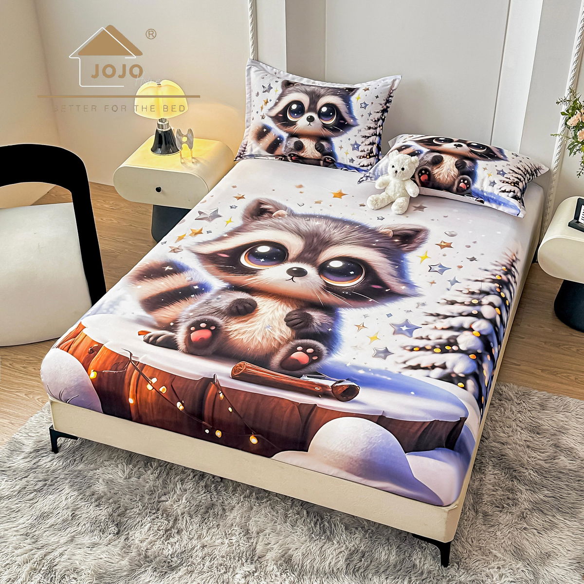 Cearceaf din Bumbac Satinat cu Elastic - 180x200 + 2 Fete Perna - Visul Ursuletului - CEFN_K018