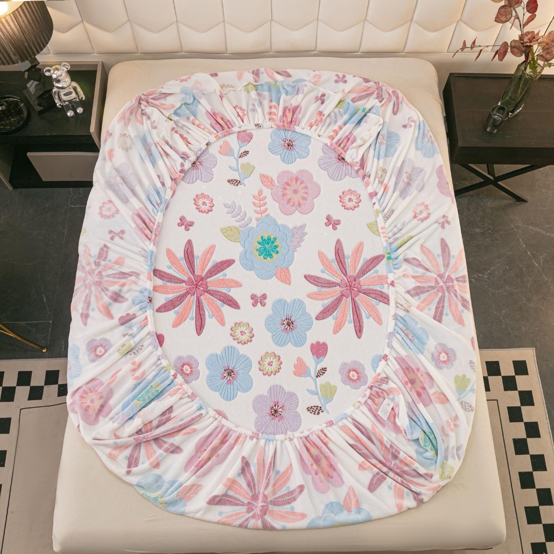 Cearsaf CoCoLiNo, JoJo Home, cu Elastic, 180x200x25cm, 2 fete de perne, 50x70cm, Alb, Roz, Flori Mari