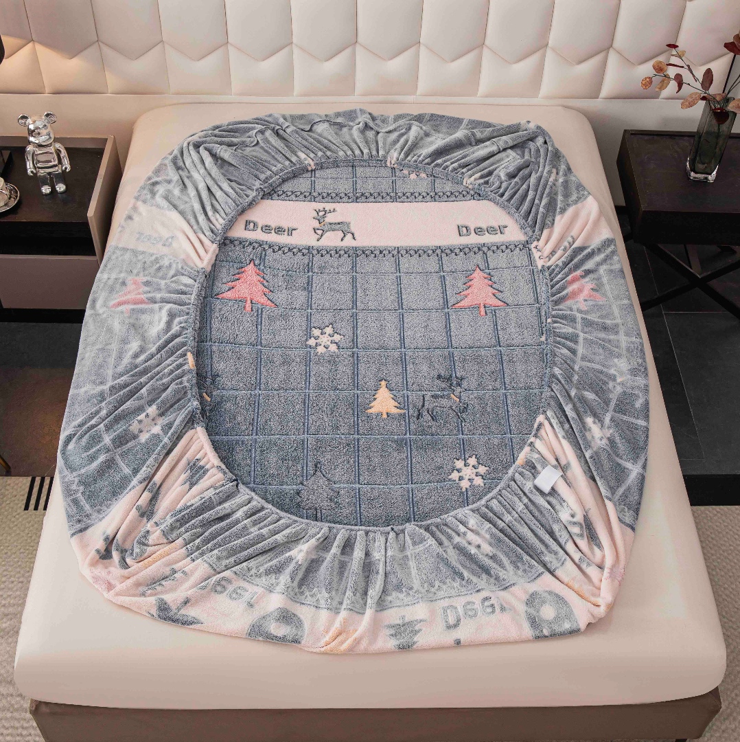 Cearsaf CoCoLiNo, JoJo Home, cu Elastic, 180x200x25cm, 2 fete de perne, 50x70cm, Gri, Alb, Reni, Fulgi de Nea