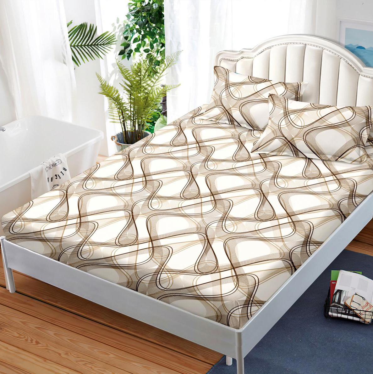 (OFERTA 3 la 159 Lei) Cearsaf cu elastic, FINET, 180x200cm, 2 fete de perne 50x70cm, Maro, abstract