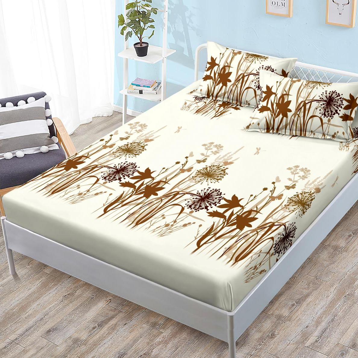 (OFERTA 3 la 159 Lei) Cearsaf cu elastic, FINET, 180x200cm, 2 fete de perne 50x70cm, Maro, flori