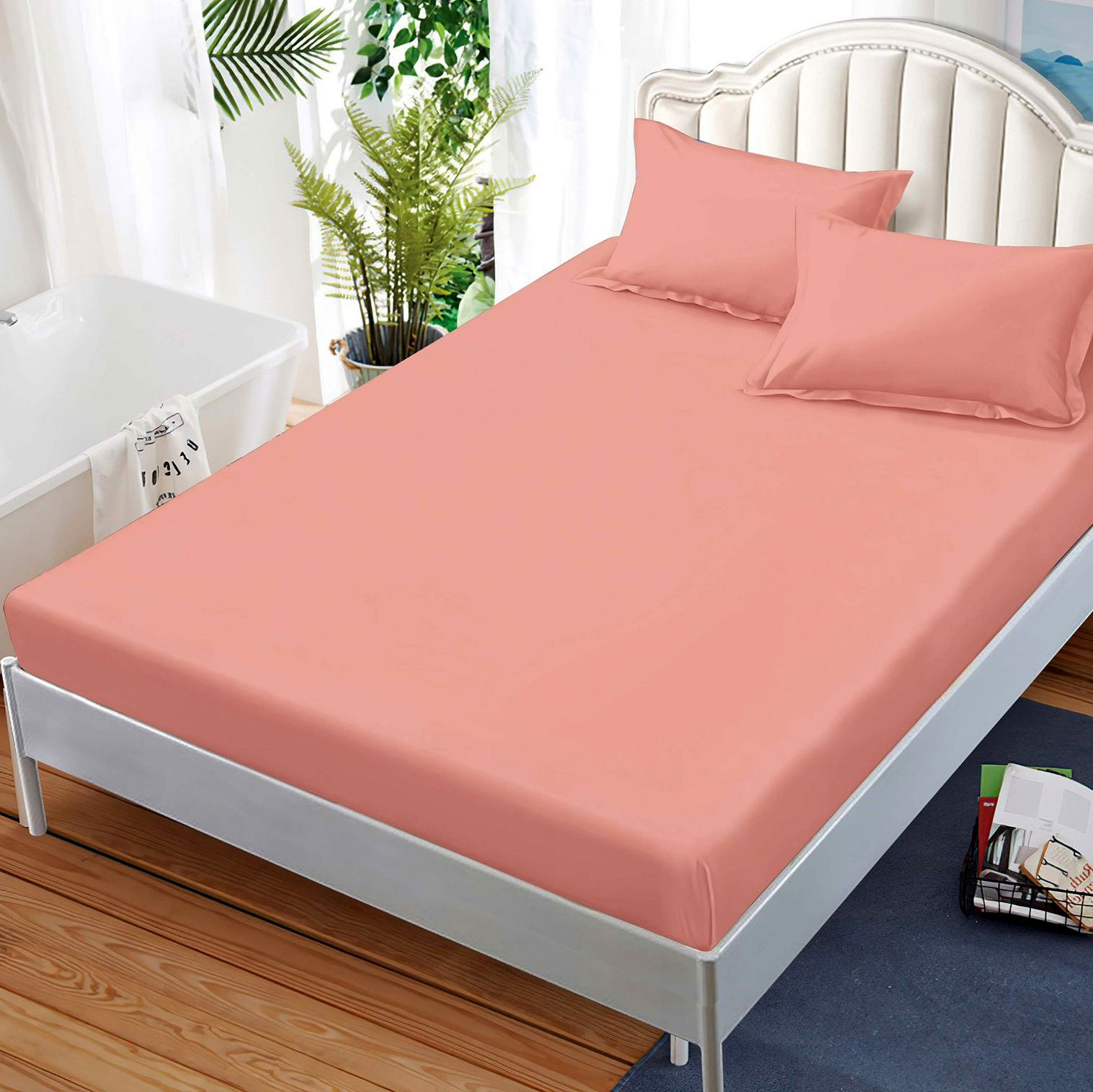 Scapa de grija cearsafului de pat, alegand un produs perfect, se imbraca minunat salteaua ta!  Confectionat din Bumbac 100%, tesatura finet, cu aspect moale, fin, catifelat, usor de intretinut, cearsaful cu elastic este ideal pentru tine, el putand fi folosit drept husa sau cearsaf de pat. In plus, el vine si cu doua fete de perna, dreptunghiulare. Husa imbraca perfect salteaua cu latime de 180 cm, lungime de 200 cm si inaltime de 25cm, atat pe fata cat si lateralul acesteia, avand ela