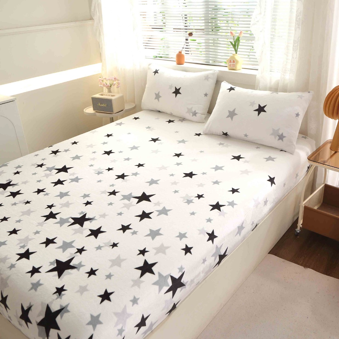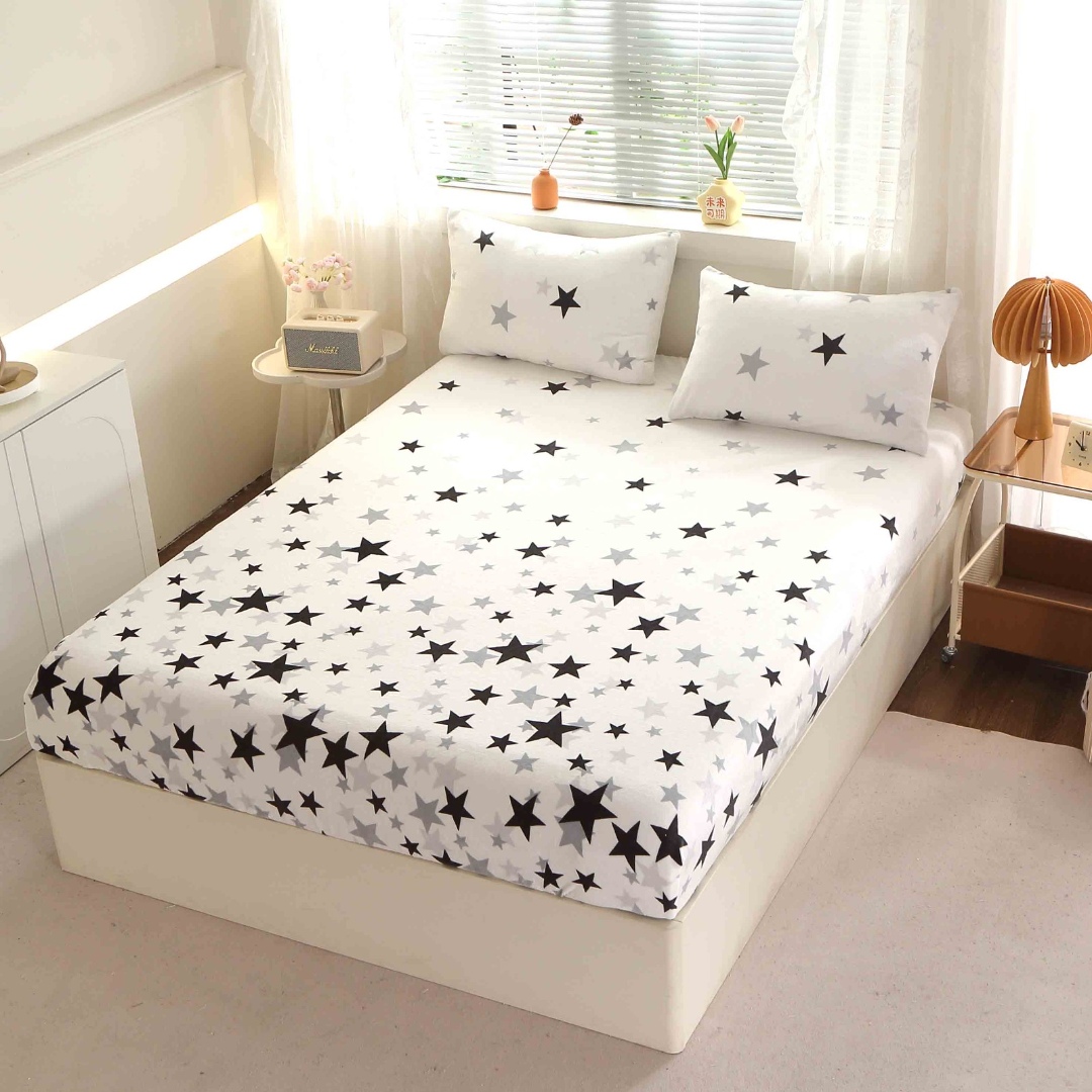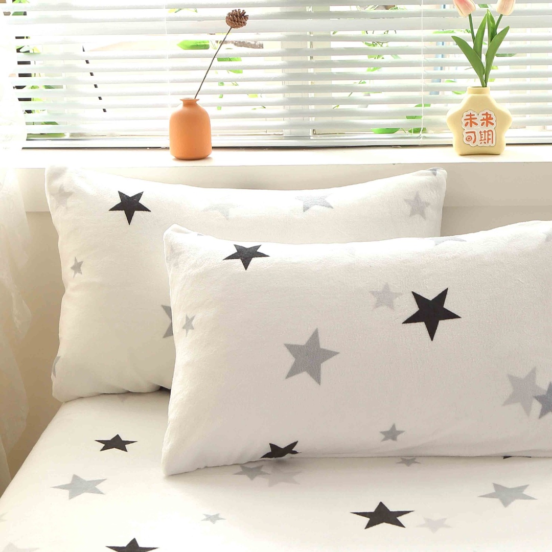 Cearsaf cu Elastic Cocolino 180x200cm si 2 fete de perna 50x70cm, Alb, stelute