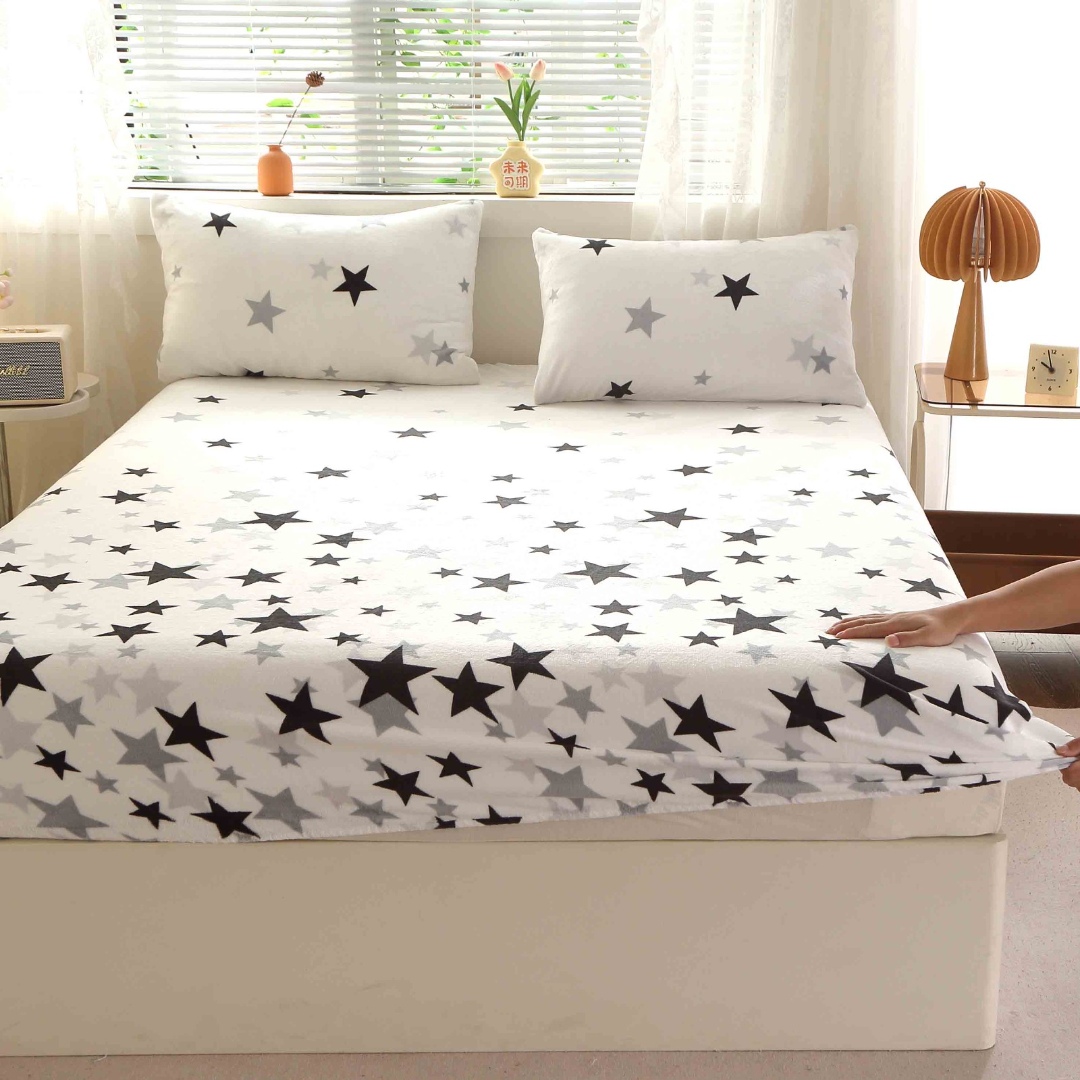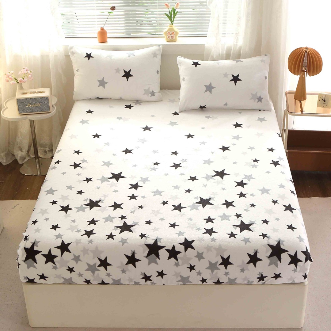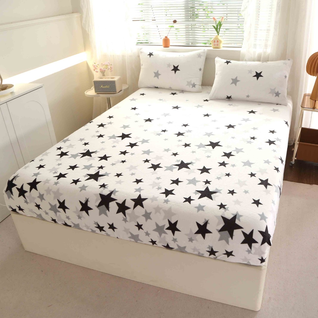 Cearsaf cu Elastic Cocolino 180x200cm si 2 fete de perna 50x70cm, Alb, stelute