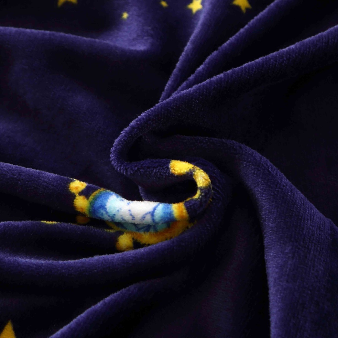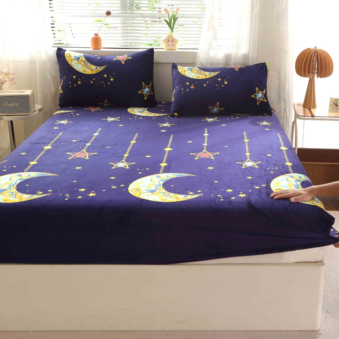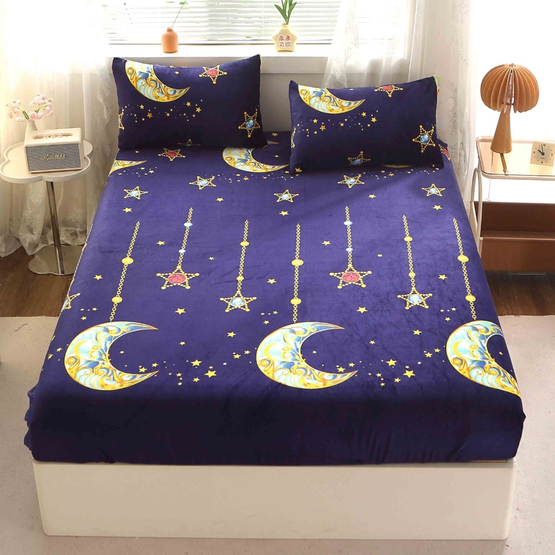 Cearsaf cu Elastic Cocolino 180x200cm si 2 fete de perna 50x70cm, Albastru, stelute si luna