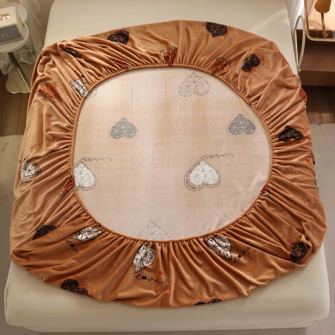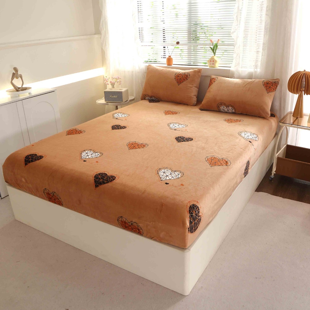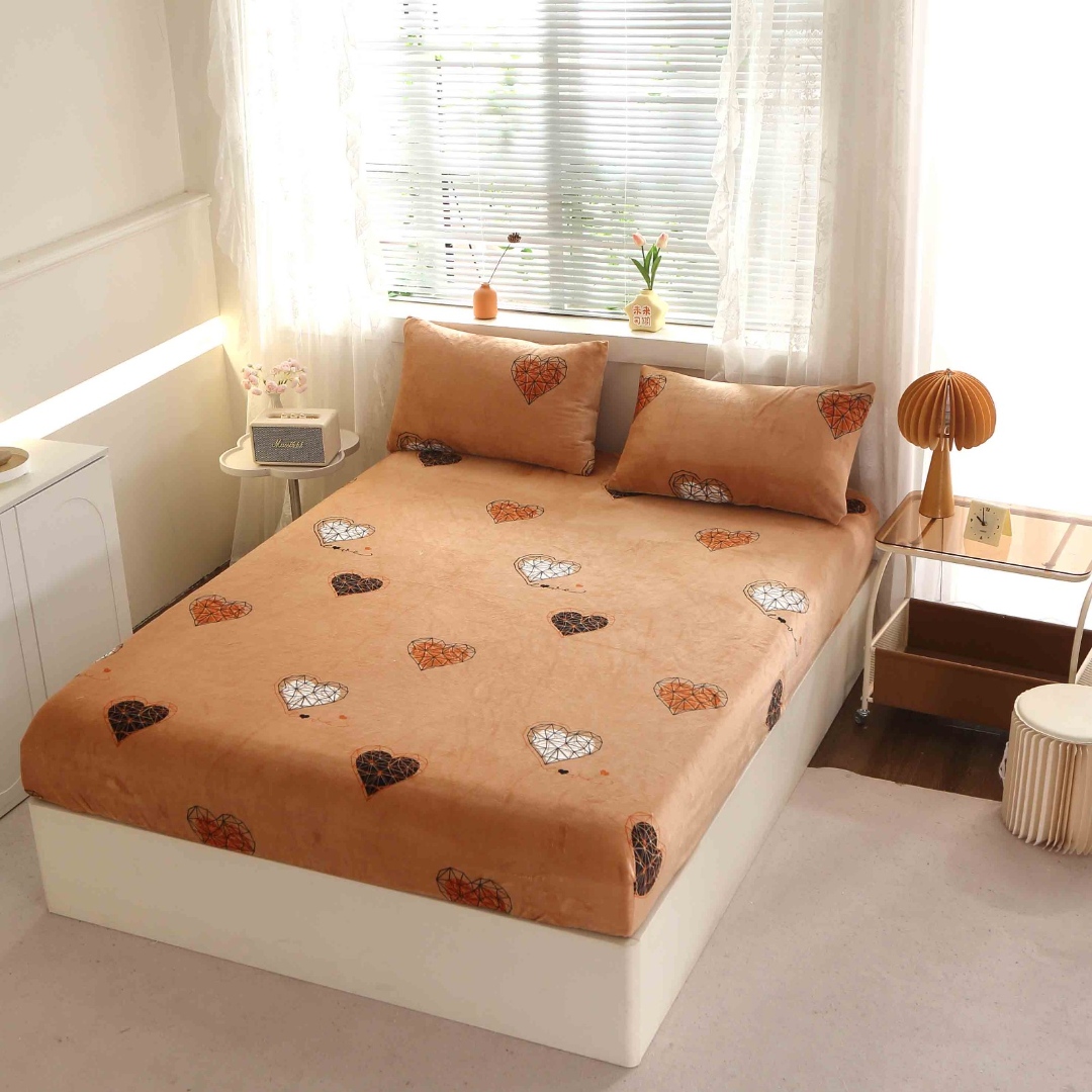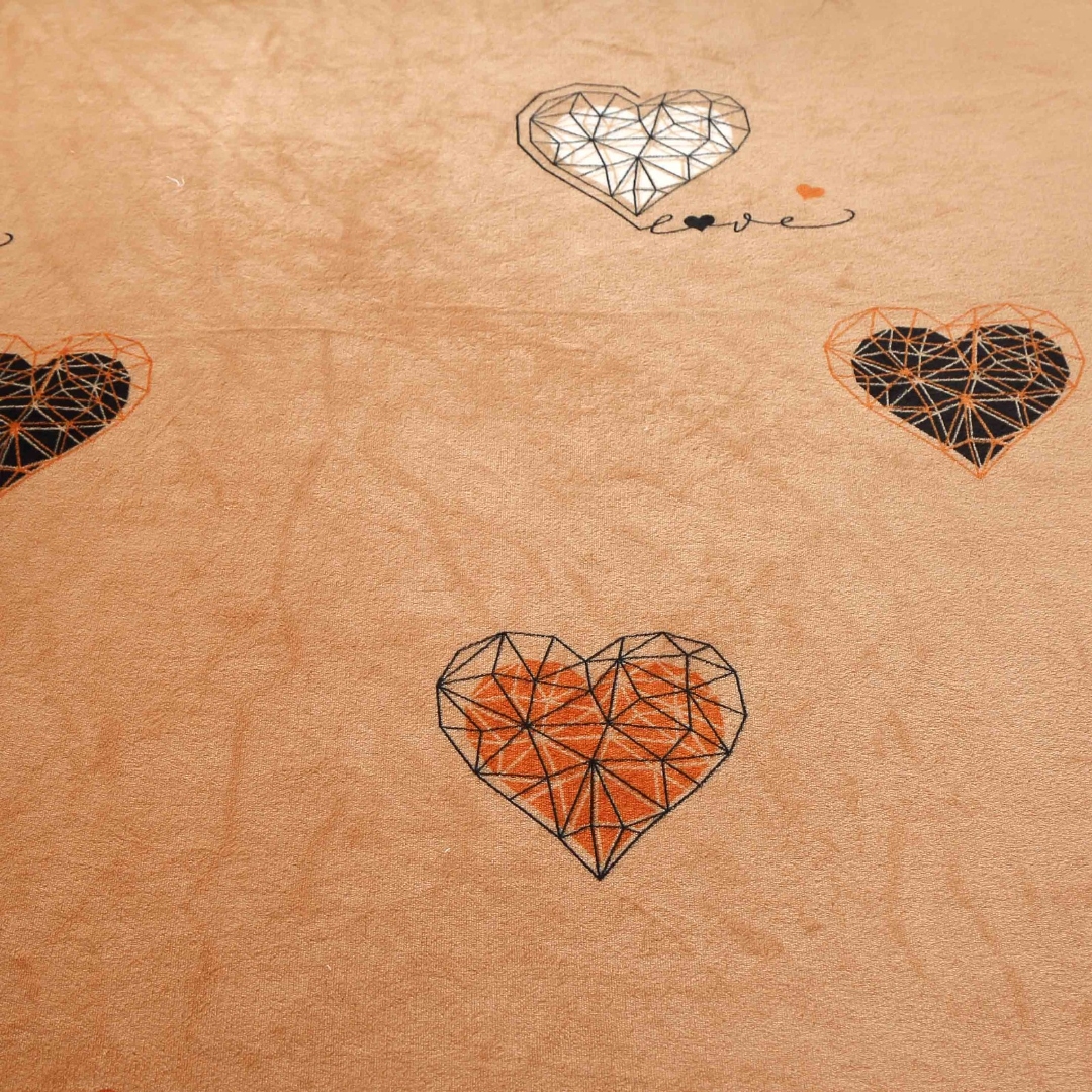 Cearsaf cu Elastic Cocolino 180x200cm si 2 fete de perna 50x70cm, Bej, inimioare