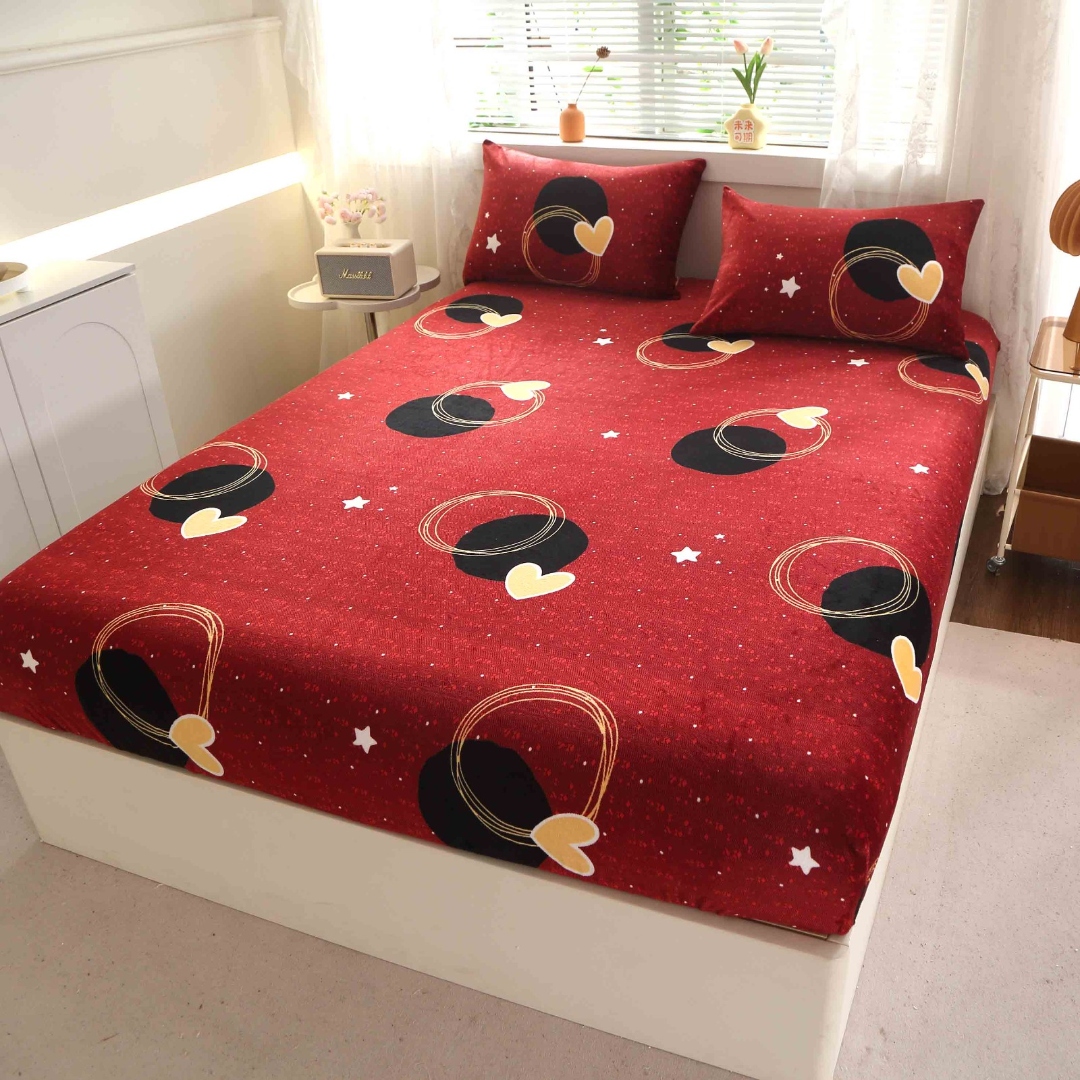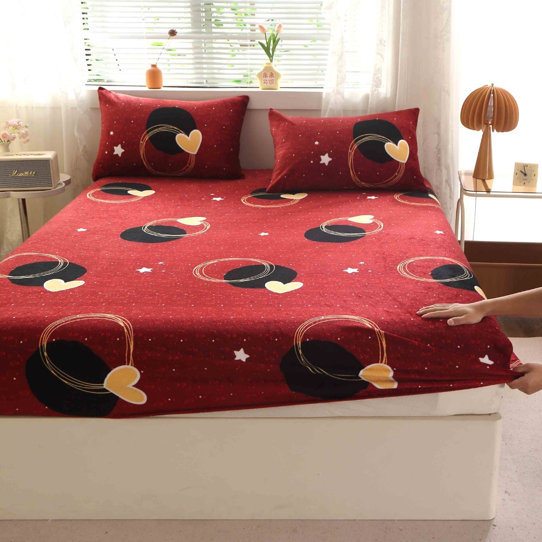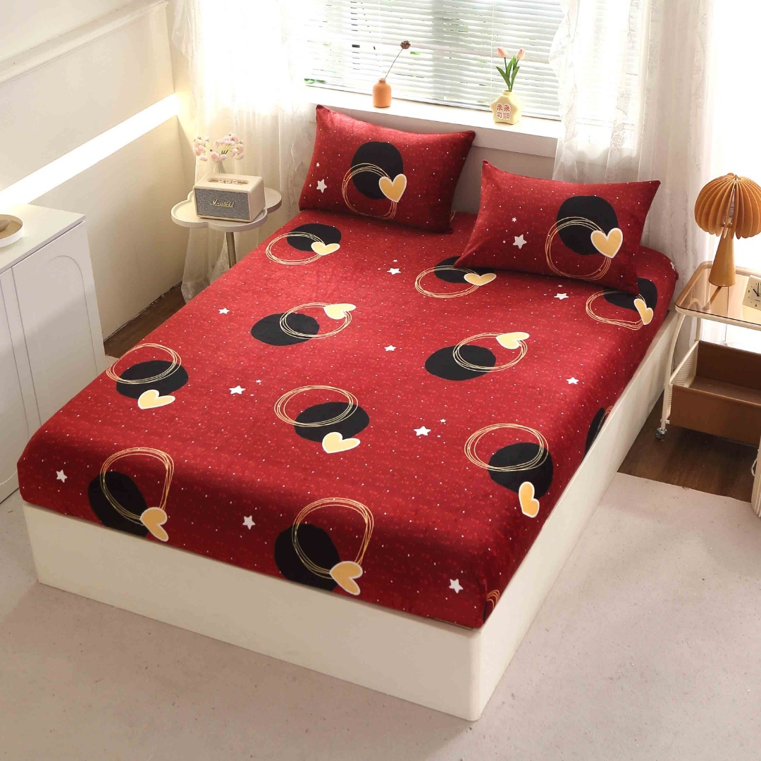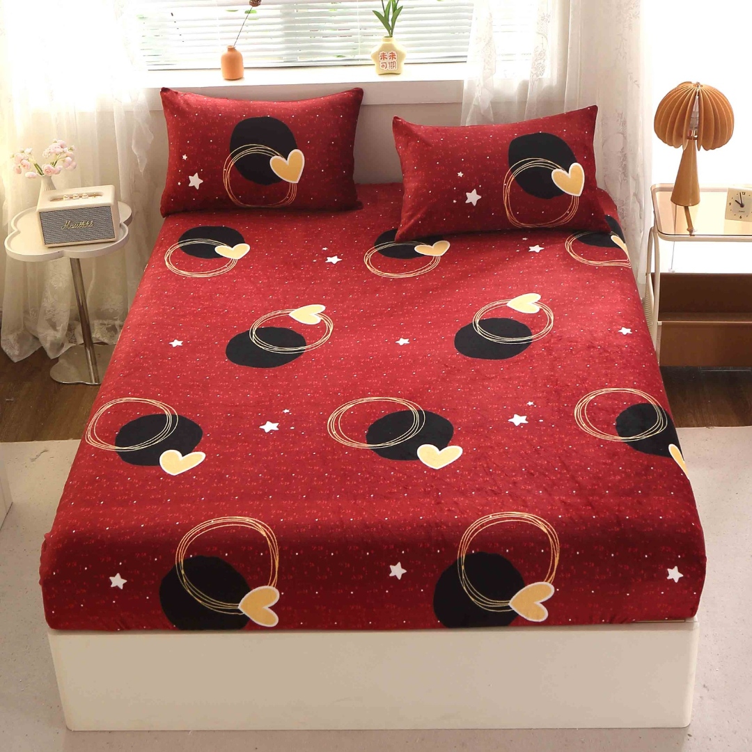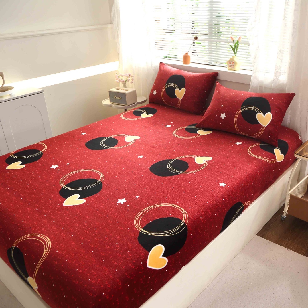 Cearsaf cu Elastic Cocolino 180x200cm si 2 fete de perna 50x70cm, Grena, inimioare