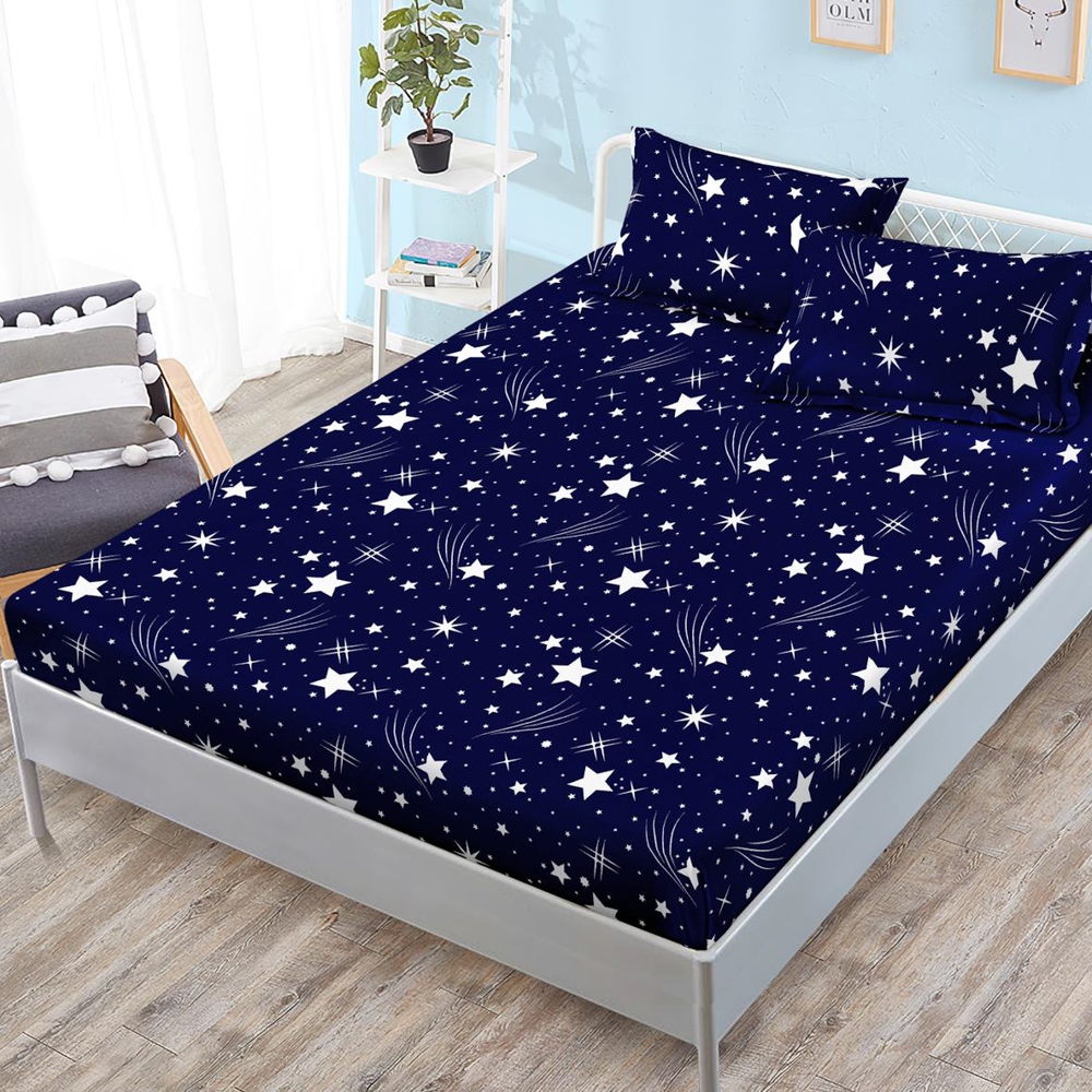 Cearsaf cu elastic, FINET, 180x200cm, 2 fete de perne 50x70cm, Albastru, ploaie de stele
