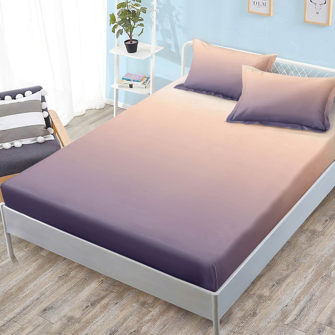 (OFERTA 3 la 159 Lei) Cearsaf cu elastic, FINET, 180x200cm, 2 fete de perne 50x70cm, Mov, Roz, degrade