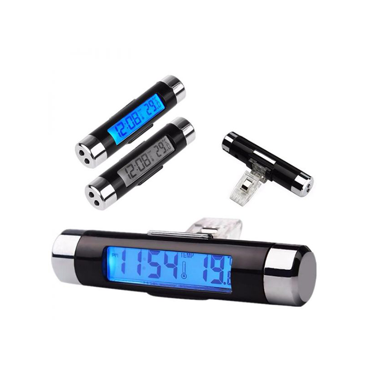 Ceas digital iluminat cu termometru pentru autovehicul afiseaza temperatura in grade Celsius, iar ora se poate seta in format de 12 sau 24 ore. Totusi ceasul si termometrul digital cu display si neon, reprezinta o solutie foarte buna in momentul in care preferi sa ai doua functii intr-un singur aparat mic si foarte comod. Caracteristici: Model: CT20 Ecran LCD Iluminare LED: activare prin buton Interval masurare: -20 grade C si 50 grade C Format: 12 sau 24 ore Functioneaza cu 2 baterii LR44 ( incluse in pachet ) Dimensiuni: 8.4 x 2.4cm Pachetul contine: 1 x ceas digital 2 x baterii 1 x clema prindere 1 x manual Comanda acum ceasul auto digital si profita de oferta promotionala!