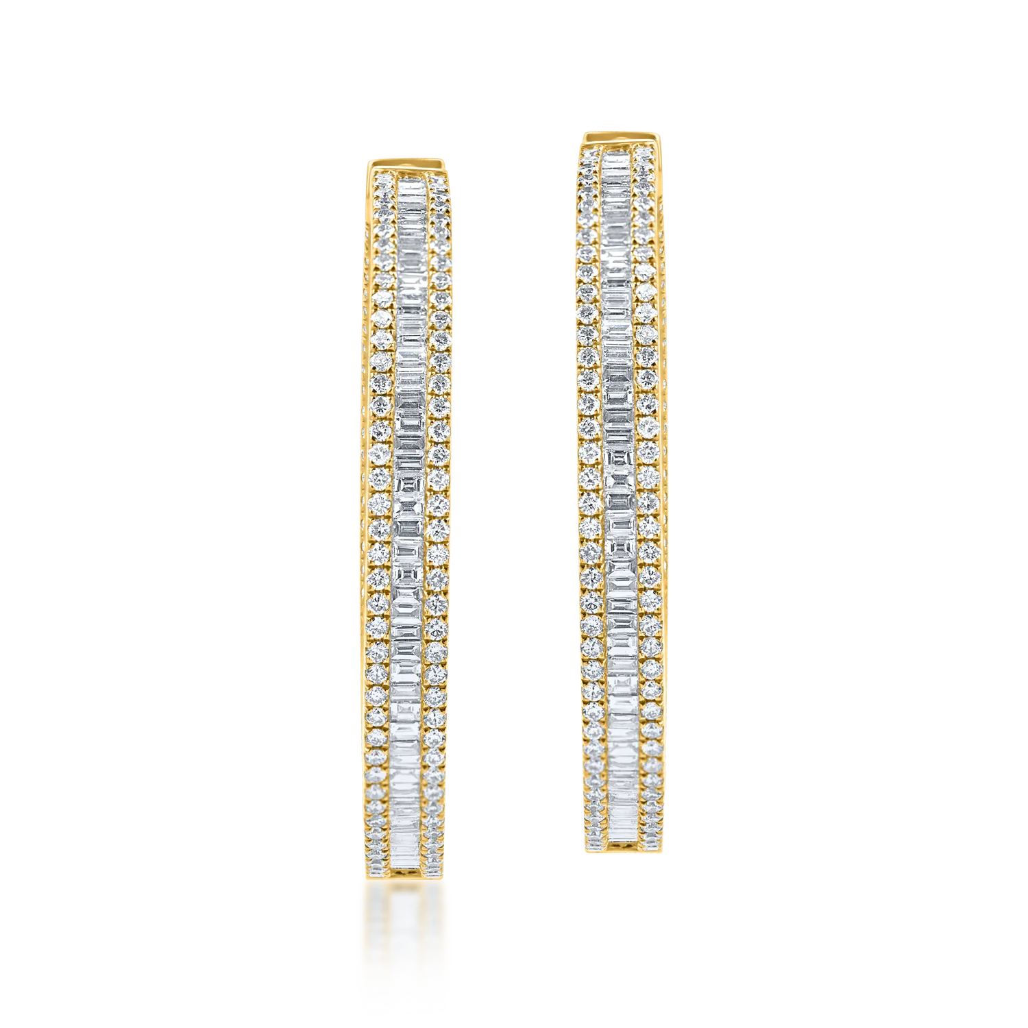 Cerceii creole din aur galben cu diamante baguette de 3.8ct sunt o reinterpretare moderna a unui design clasic. Taieturile baguette, cu reflexiile lor ordonate si profunde, creeaza o lumina fluida si continua pe intreaga forma a cerceilor. Aurul galben amplifica caldura si stralucirea diamantelor, oferind o prezenta eleganta si sofisticata. Fiecare detaliu exprima gratie si siguranta de sine, iar TEILOR celebreaza prin aceasta bijuterie frumusetea naturala a femeii care alege sa straluceasca in fiecare zi.