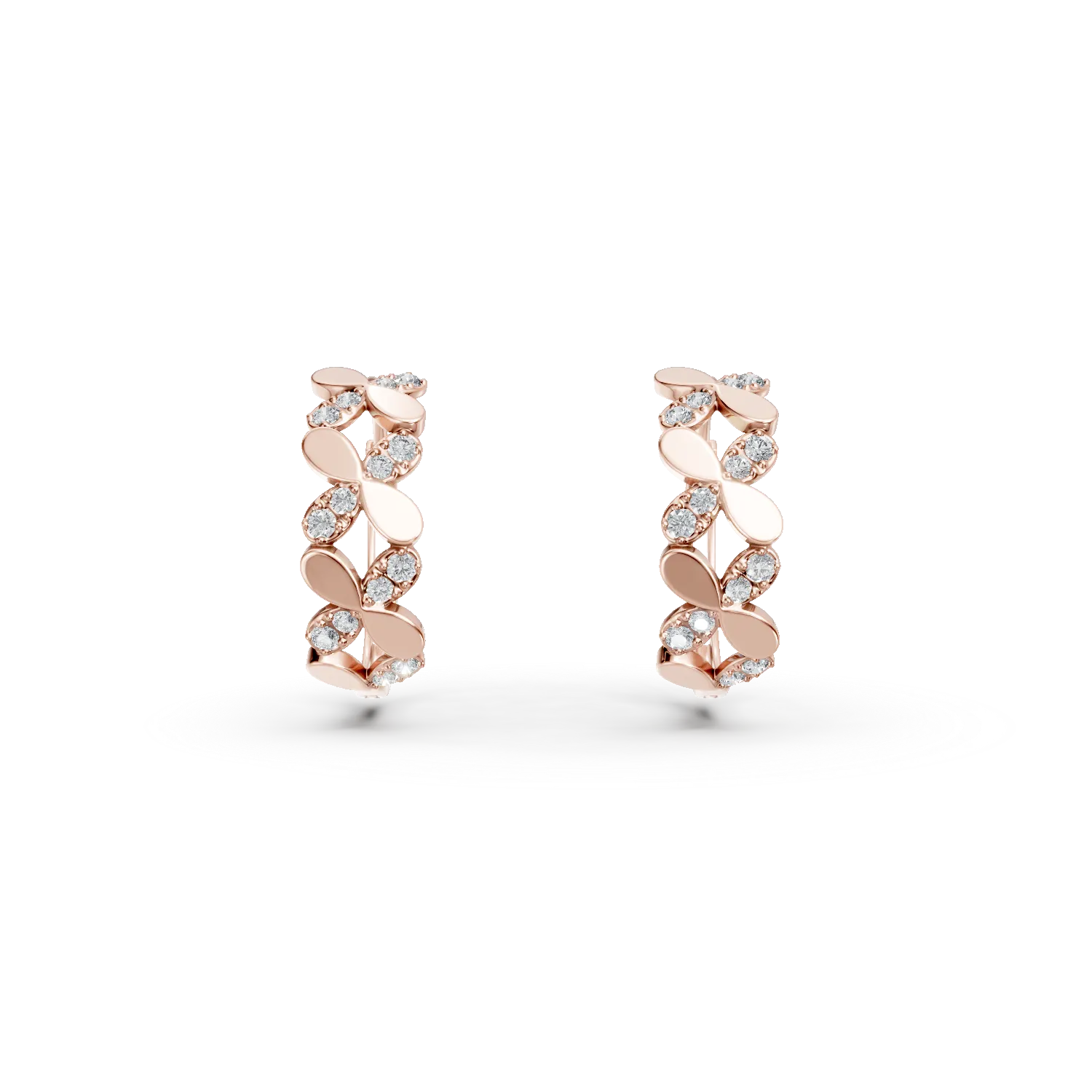 Descopera bijuteriile care iti descriu personalitatea si iti dau incredere in tine. Perechea de cercei creole din aur roz cu zirconia contureaza o simfonie de reflexii care captiveaza privirile. La fel ca tine. O emotie capturata intr-o piesa delicata. Un echilibru perfect intre modern si clasic care celebreaza fiecare clipa.
