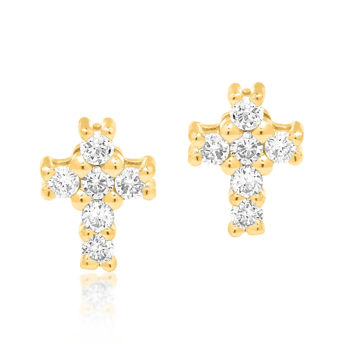 Bijuteriile vorbesc despre tine. Tu spune-ti povestea cu noi. Poarta si ofera din dragoste aceasta pereche de cercei cruciulite din aur galben cu diamante de 0.086ct. TEILOR - inspiratia ta in crearea unei aparitii memorabile.
