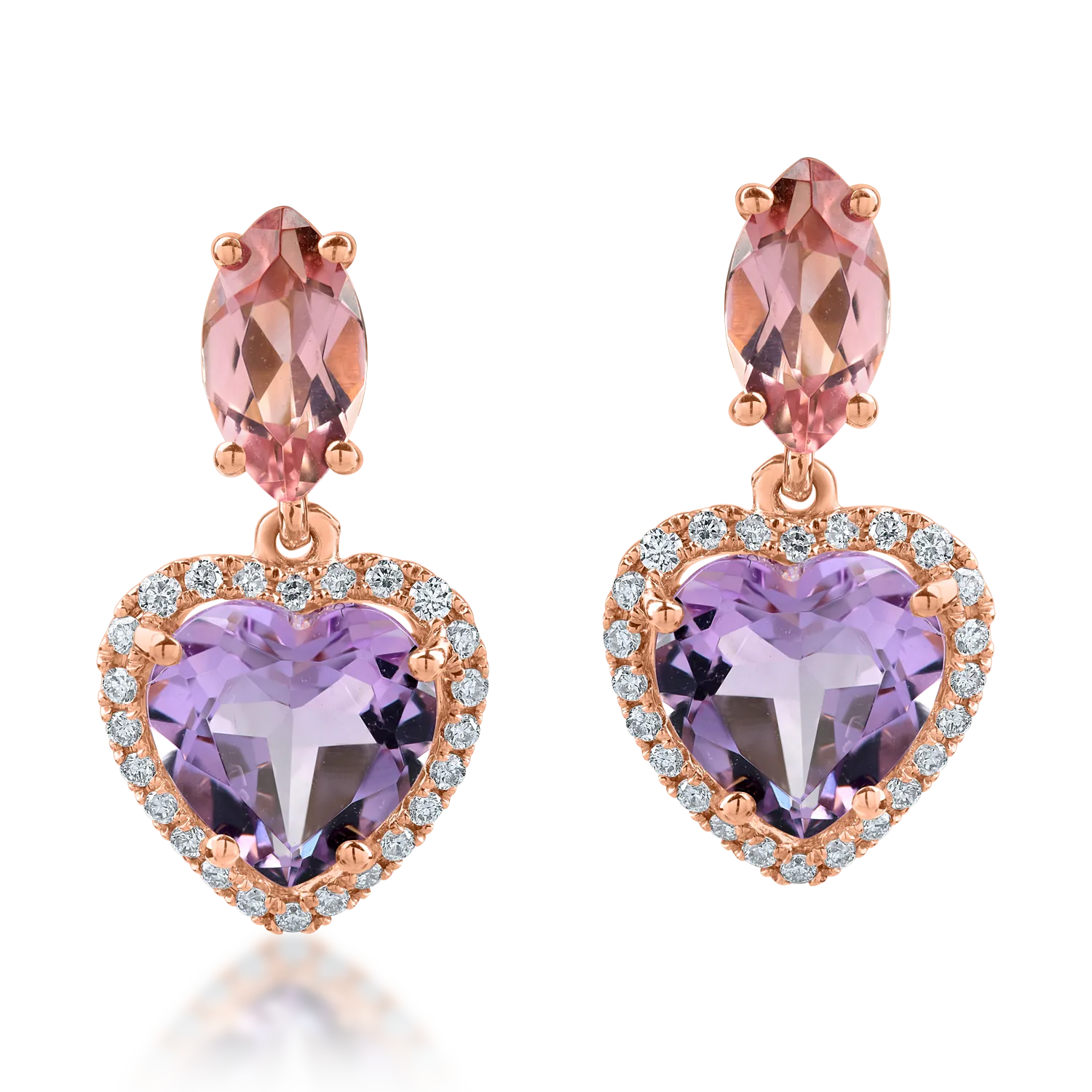 Intotdeauna originala, mereu surprinzatoare - TU. Cu un design atemporal, cerceii cu inimioare din aur roz cu pietre pretioase si semipretioase de 3.4ct sunt accesoriul principal in conturarea unei tinute elegante. TEILOR - inspiratia ta in crearea unei aparitii memorabile.