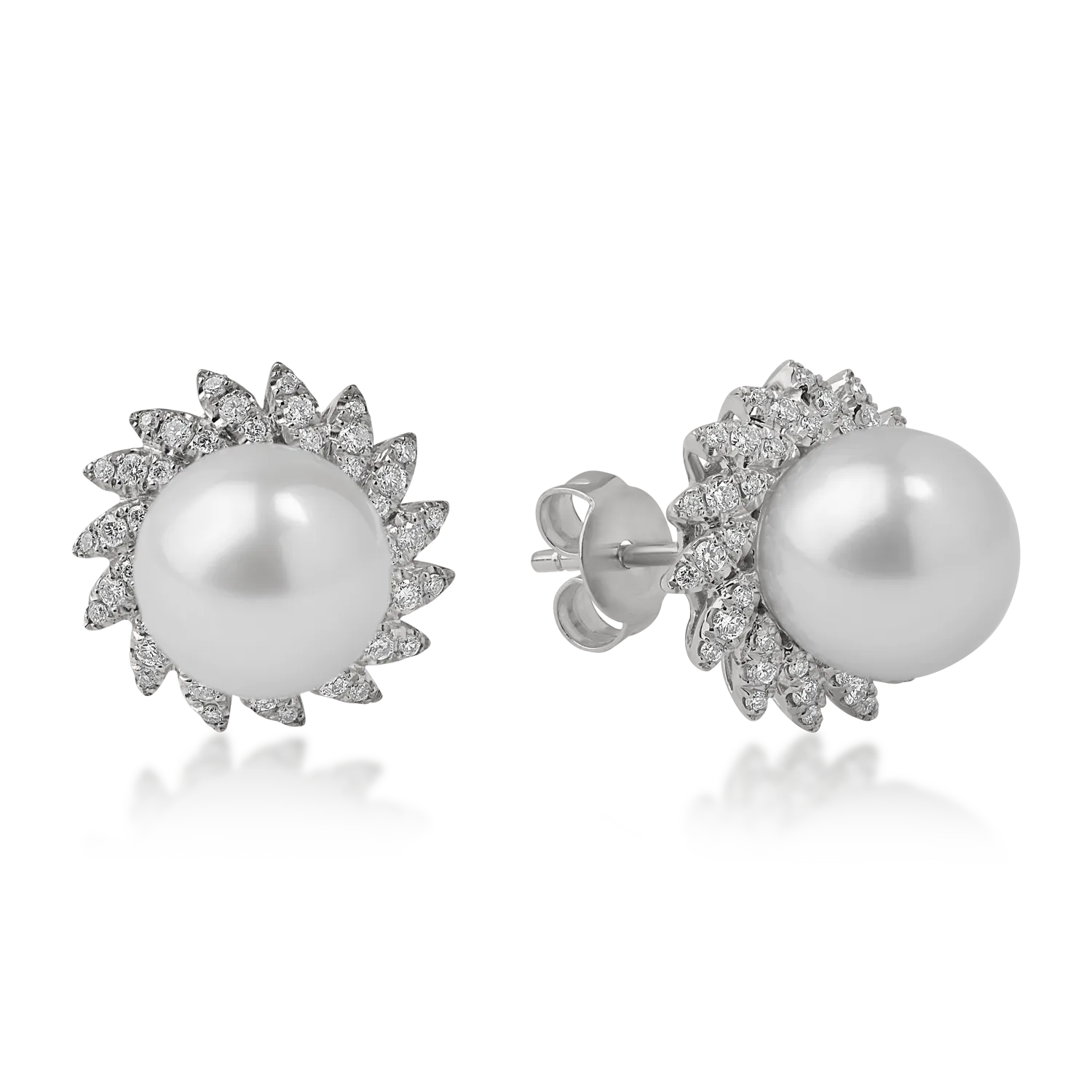 Poarta bijuteriile care iti dau incredere in tine. Autenticitatea designului si rafinamentul cerceilor din aur alb cu perle de cultura de 7.6ct si diamante de 0.3ct dau o nota eleganta oricarui stil. O emotie capturata intr-o piesa delicata. Un echilibru perfect intre modern si clasic care celebreaza fiecare clipa.