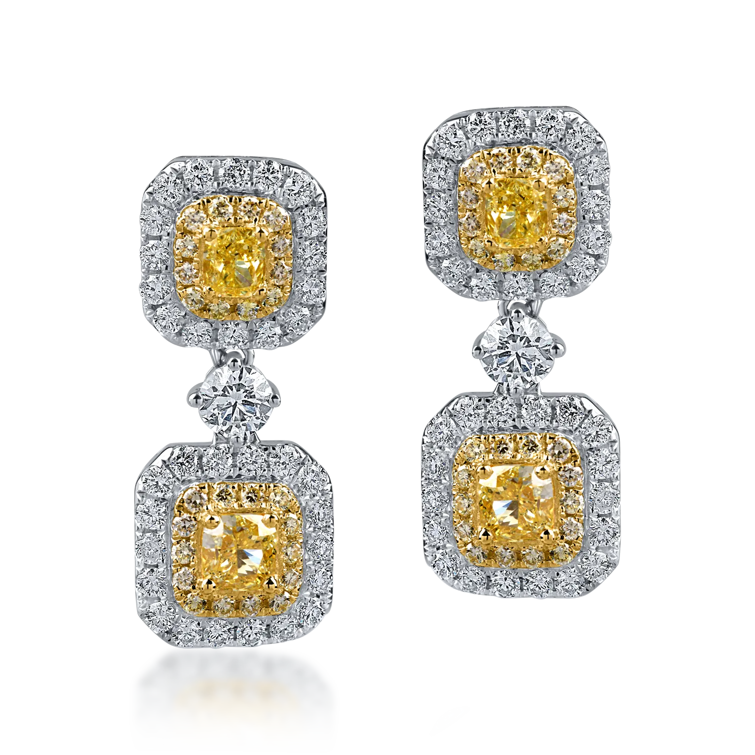Cerceii din aur alb-galben cu diamante galbene de 1.58ct si diamante incolore de 0.75ct imbina armonios caldura si claritatea intr-o bijuterie cu stralucire sofisticata. Taieturile cushion evidentiaza profunzimea nuantelor aurii, oferind o lumina blanda si rafinata. Diamantele round aduc echilibru si stralucire pura. Iar contrastul dintre tonurile calde ale aurului galben si puritatea aurului alb amplifica eleganta designului, creand un efect vizual plin de dinamism si distinctie. O creatie care celebreaza frumusetea in echilibru perfect. Descopera la TEILOR eleganta care transcende tendintele si devine o expresie a rafinamentului autentic.