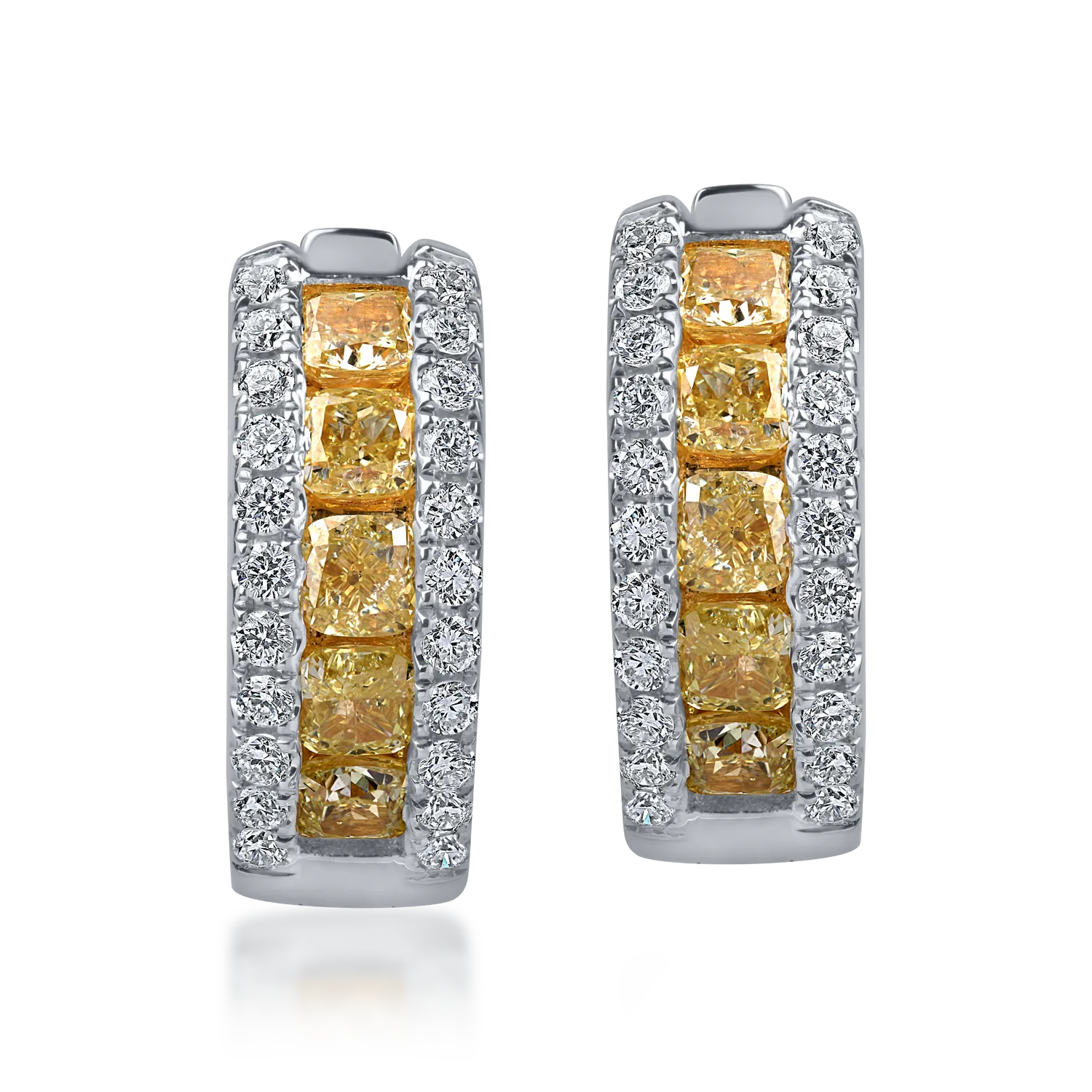 Lasă-te purtată de magie cu bijuteriile unice TEILOR. Cerceii din aur alb-galben cu diamante galbene si incolore de 1.6ct sunt o combinatie perfecta intre traditie si modernitate, aducand un plus de stil si personalitate. Alege sa te exprimi prin eleganta.
