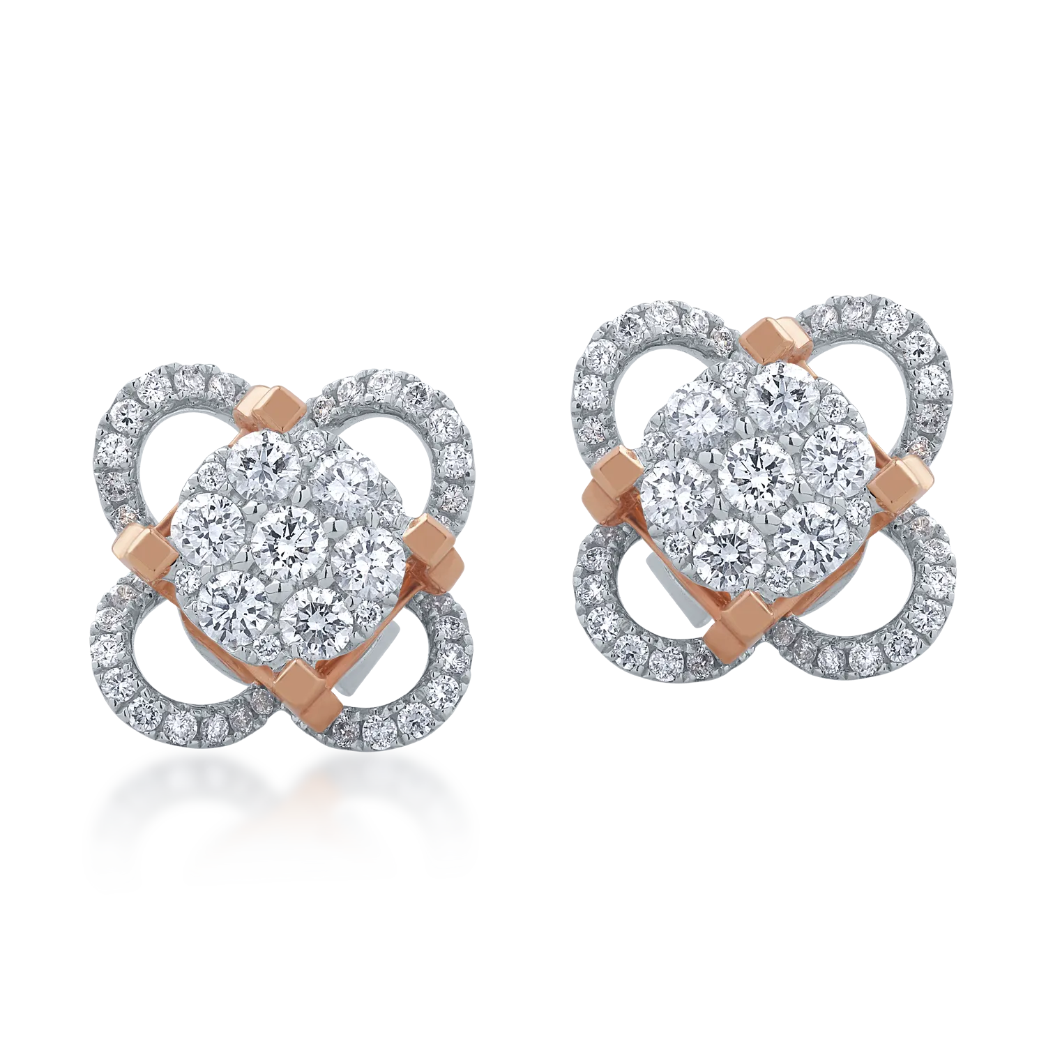 Poarta bijuteriile care iti dau incredere in tine. Perechea de cercei din aur alb-roz cu diamante de 0.66ct defineste un mod inedit de a impartasi pasiunea pentru eleganta. O emotie capturata intr-o piesa delicata. Un echilibru perfect intre modern si clasic care celebreaza fiecare clipa.