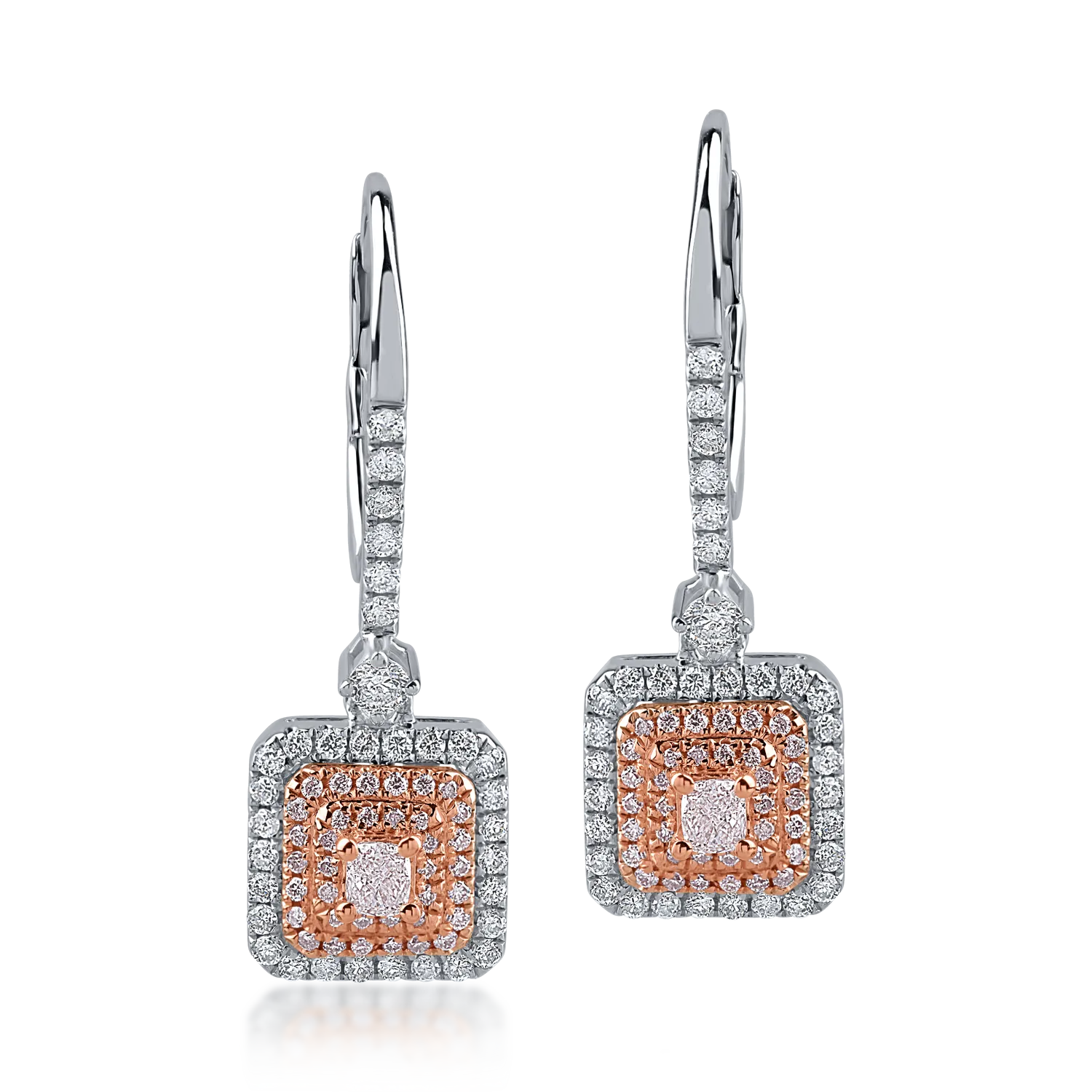 Intotdeauna originala, mereu surprinzatoare - TU. Cu straluciri captivante, cerceii din aur alb-roz cu diamante transparente de 0.42ct si diamante roz de 0.32ct sunt primul pas in crearea unui stil unic, asemenea tie. Poarta accesoriile care iti evidentiaza latura sofisticata.