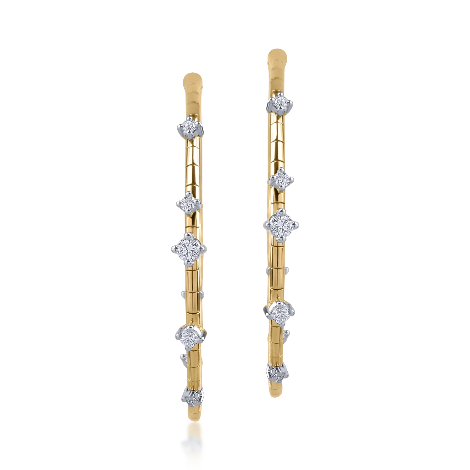 Bijuteria reprezinta alegerea ideala atunci cand doresti sa adaugi o nota proaspata tinutelor tale. Cu straluciri captivante, acesti cercei din aur galben cu diamante de 0.49 ct sunt primul pas in crearea unui stil unic, asemenea tie. O emotie capturata intr-o piesa delicata. Un echilibru perfect intre modern si clasic care celebreaza fiecare clipa.