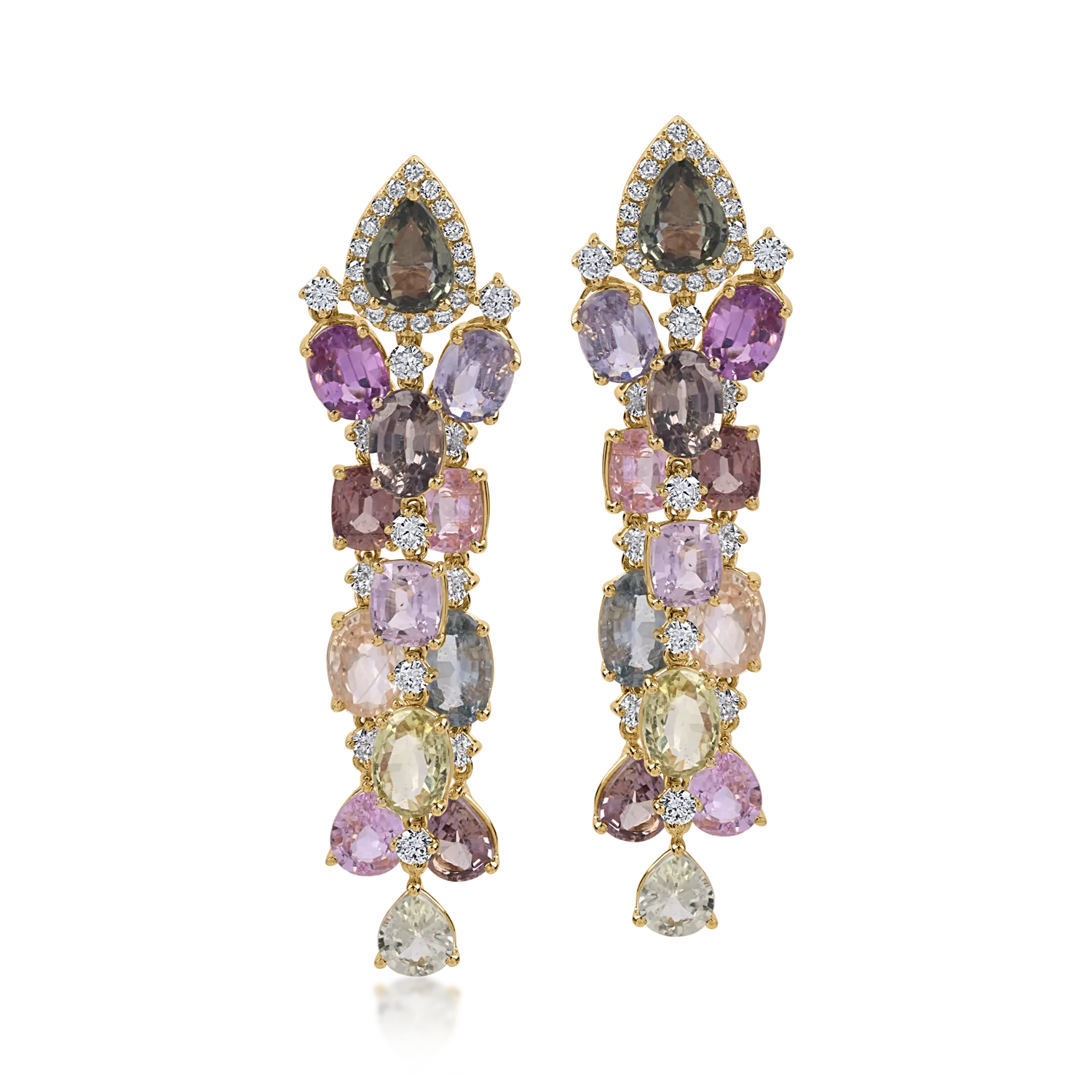 Culoarea devine expresie a bucuriei in cerceii din aur galben cu safire multicolore de 21.69ct si diamante de 1.56ct. Pietrele slefuite in multiple shapes creeaza un dans vibrant de lumina, iar diamantele round completeaza ansamblul cu stralucire fina si echilibru. Aurul galben pune in valoare tonurile vii ale safirelor, oferind un contrast cald si luxuriant. O bijuterie exuberanta, care celebreaza individualitatea si feminitatea prin culoare, lumina si rafinament. Descopera la TEILOR eleganta care prinde viata in fiecare nuanta.