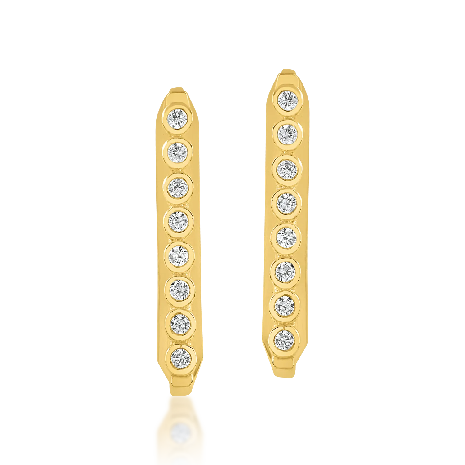 Poarta bijuteriile care dau contur emotiilor tale, care adauga prospetime prin nuantele lor vibrante. Cerceii din aur galben stralucesc intr-un joc hipnotizant de nuante, intensificat de fiecare raza de lumina. Completeaza orice tinuta si vorbeste despre latura ta feminina. In fiecare zi. Cu fiecare pas.