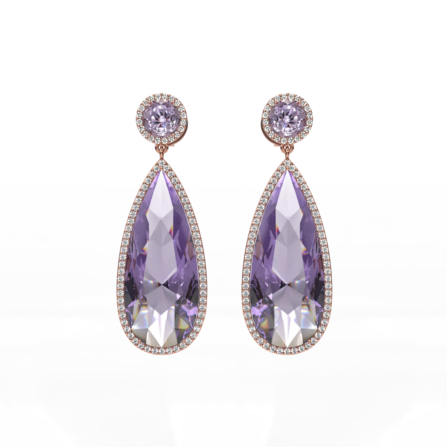 Paseste in lumea seducatoare a bijuteriilor pregatite sa cucereasca inimi si priviri. Cu un design atemporal, cerceii din aur roz cu ametiste de 13.85ct si diamante de 0.571ct sunt accesoriul principal in conturarea unei tinute elegante. Poarta accesoriile care iti evidentiaza latura sofisticata.