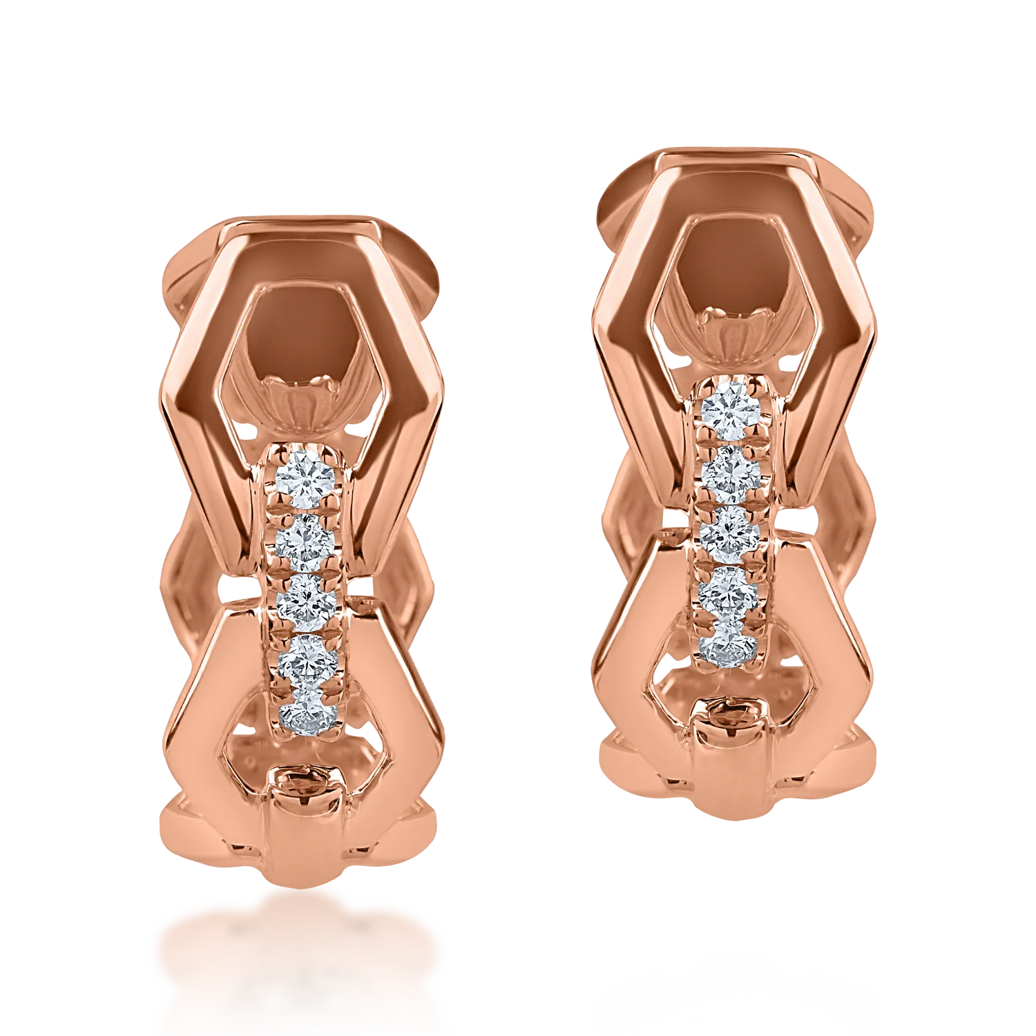 Dezvaluie-ti stilul prin micile detalii. Aceasta pereche de cercei din aur roz cu diamante de 0.066ct povesteste despre frumusetea subtila pe care vrei sa o exprimi in cat mai multe feluri. Bijuteria completeaza orice tinuta si transmite feminitate. In fiecare zi. Cu fiecare pas.