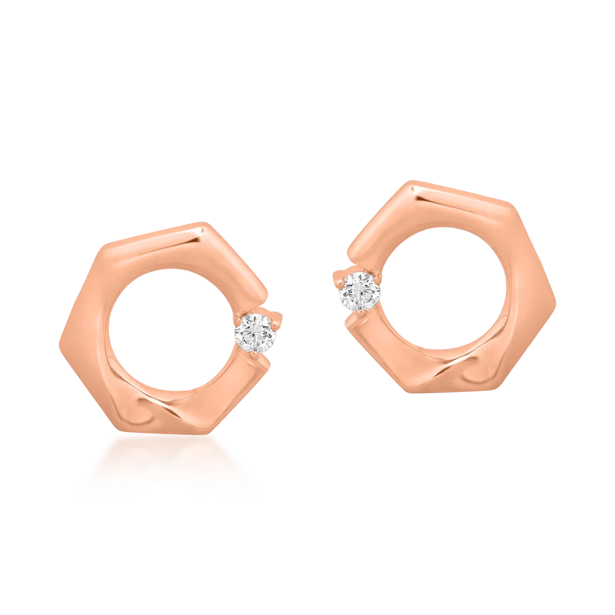 Exploreaza arta de a conferi frumusetii o noua perspectiva. O reflexie a personalitatii tale. Cu straluciri captivante, cerceii din aur roz cu diamante de 0.07ct sunt primul pas in crearea unui stil unic, asemenea tie. O emotie capturata intr-o piesa delicata. Un echilibru perfect intre modern si clasic care celebreaza fiecare clipa.