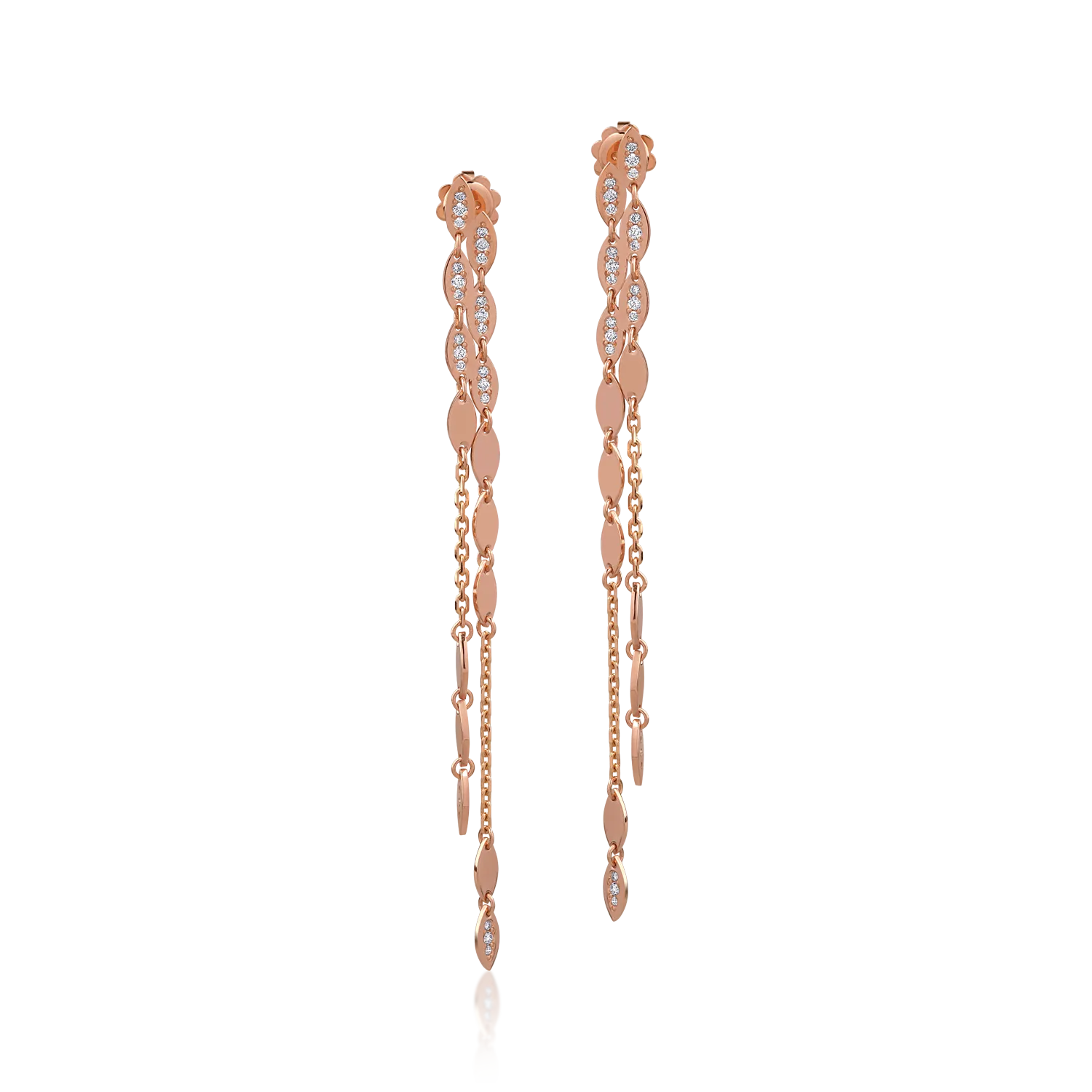 Bijuteriile vorbesc despre tine. Tu spune-ti povestea cu noi. Conceputa pentru a pastra amintiri, perechea de cercei din aur roz cu diamante de 0.4ct surprinde nuantele stilului tau. TEILOR vorbeste despre emotia fiecarei clipe.