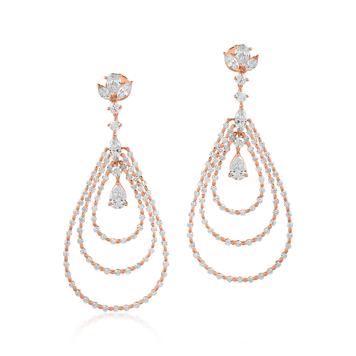 Bijuteriile vorbesc despre tine. Tu spune-ti povestea cu noi. Perechea de cercei din aur roz cu diamante de 4.48ct defineste un mod inedit de a impartasi pasiunea pentru eleganta. Poarta accesoriile care iti evidentiaza latura sofisticata.