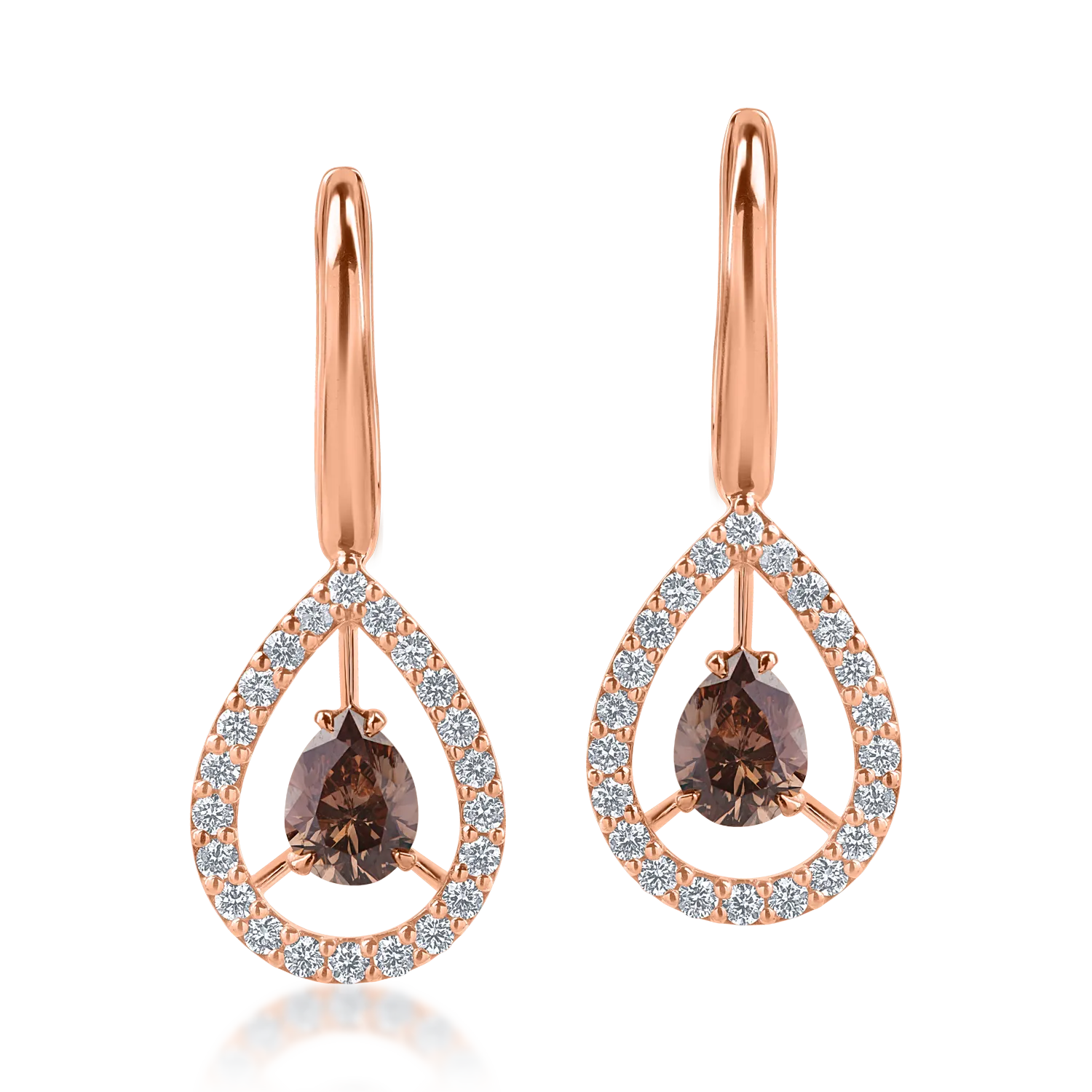 Bijuteria reprezinta alegerea ideala atunci cand doresti sa adaugi o nota proaspata tinutelor tale. Perechea de cercei din aur roz cu diamante maro de 0.98ct si diamante transparente de 0.47ct contureaza o simfonie de reflexii care captiveaza privirile. La fel ca tine. Lasa-i sa vorbeasca despre tine.