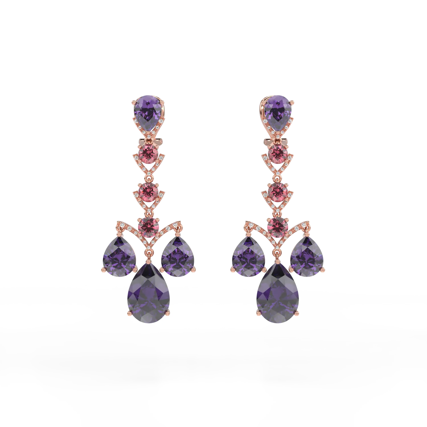 Exploreaza arta de a conferi frumusetii o noua perspectiva. O reflexie a personalitatii tale. Cu un design atemporal, cerceii din aur roz cu pietre pretioase si semipretioase de 27.37ct sunt accesoriul principal in conturarea unei tinute elegante. TEILOR vorbeste despre emotia fiecarei clipe.