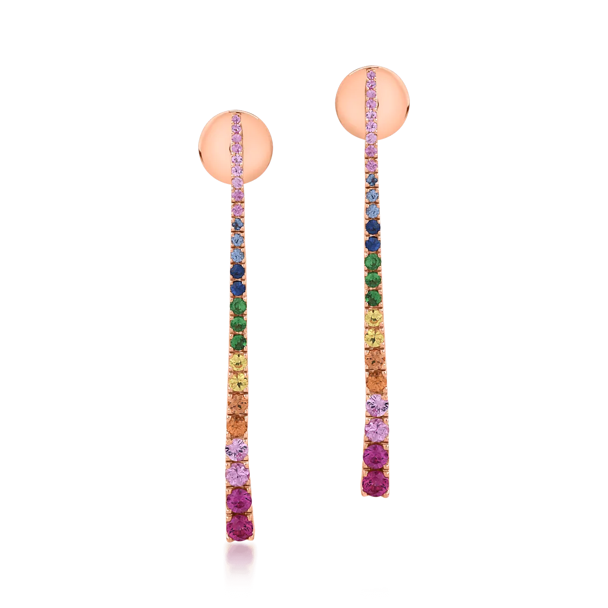 Descopera bijuteriile care iti descriu personalitatea si iti dau incredere in tine. Autenticitatea designului si rafinamentul cerceilor din aur roz cu safire multicolore de 1.64ct dau o nota eleganta oricarui stil. TEILOR este despre tine. Despre bucuria fiecarei clipe.