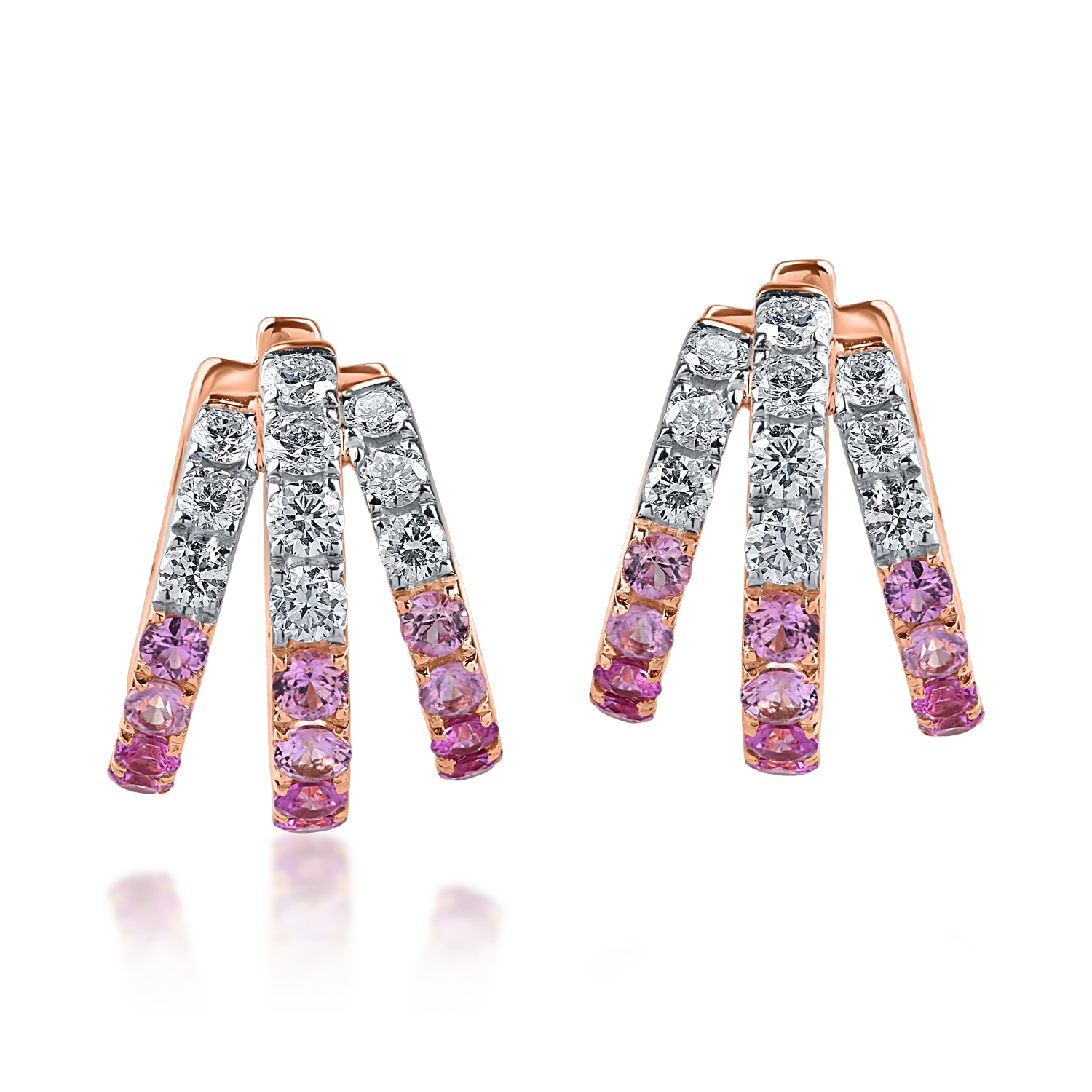 Poarta bijuteriile care dau contur emotiilor tale, care adauga prospetime prin nuantele lor vibrante. Poarta si ofera din dragoste aceasta pereche de cercei din aur roz cu safire roz de 1.2ct si diamante de 0.8ct. Completeaza orice tinuta si vorbeste despre latura ta feminina. In fiecare zi. Cu fiecare pas.