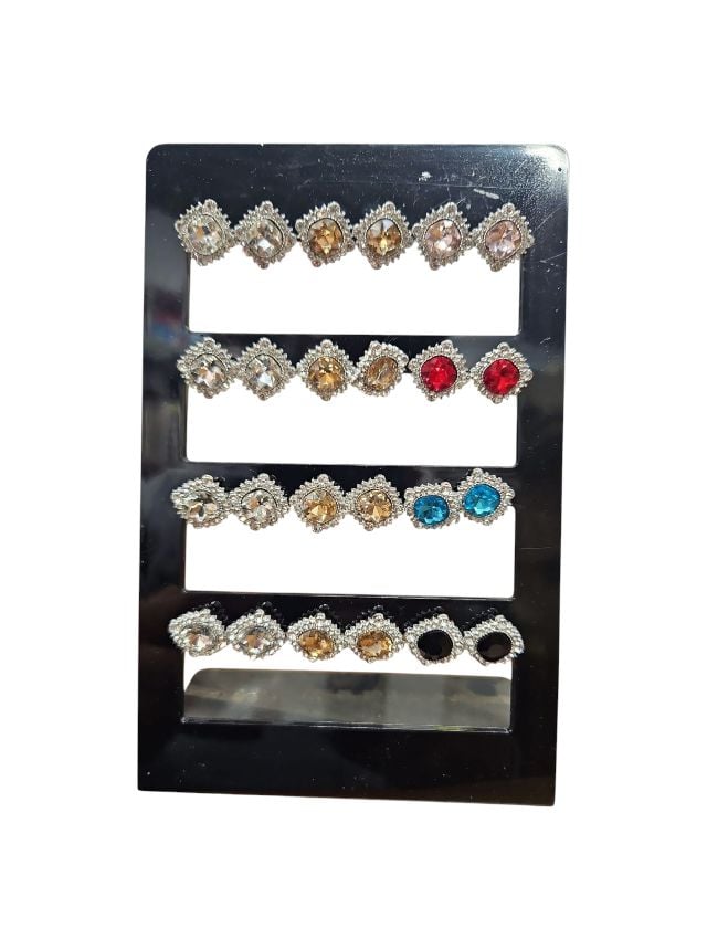 Cercei (Seturi și Display-uri) – Engros (B2B) Acest sortiment extins de cercei (modă), prezentați pe carduri sau display-uri de volum, este un articol de vânzare de impuls și accesorii de bază ideal pentru distribuitorii B2B, buticuri, magazine de cosmetice și retail-ul de accesorii. Avantaje Engros: Diversitate Maximă: Gama acoperă toate tendințele și stilurile:Elegant/Glamour: Cercei cerc sau picătură cu pietre din zirconiu/cristal (baghetă/pătrat), finisați în culori auriu sau argintiu (rodium).Clasic/Vintage: Cercei stud rotunzi cu pietre fațetate și bază aurie tip ochi-de-pisică sau modele tip floare cu perle.Natural/Spiritual: Cercei stud cu mărgele din pietre semiprețioase (ochi de tigru, turcoaz, ametist).Volum/Impus: Seturi de cercei non-pereche (calendar/semne zodiacale) pentru vânzare rapidă la preț mic.Ambalaj Display: Produsele sunt montate pe display-uri verticale (carton sau acrilic), optimizând expunerea la raft și stimulând achizițiile de impuls.Articol Consumabil: Cerceii de modă sunt un consumabil de bază cu cerere constantă, asigurând un rulaj rapid al stocului pe tot parcursul anului.Marjă Competitivă: Datorită prețului mic de achiziție în volum, aceste accesorii asigură o marjă de profit stabilă la revânzare. Achiziționați la volum acest sortiment de cercei de modă pentru a oferi clienților B2B soluții de accesorii variate, stilate și perfecte pentru vânzarea de impuls.
