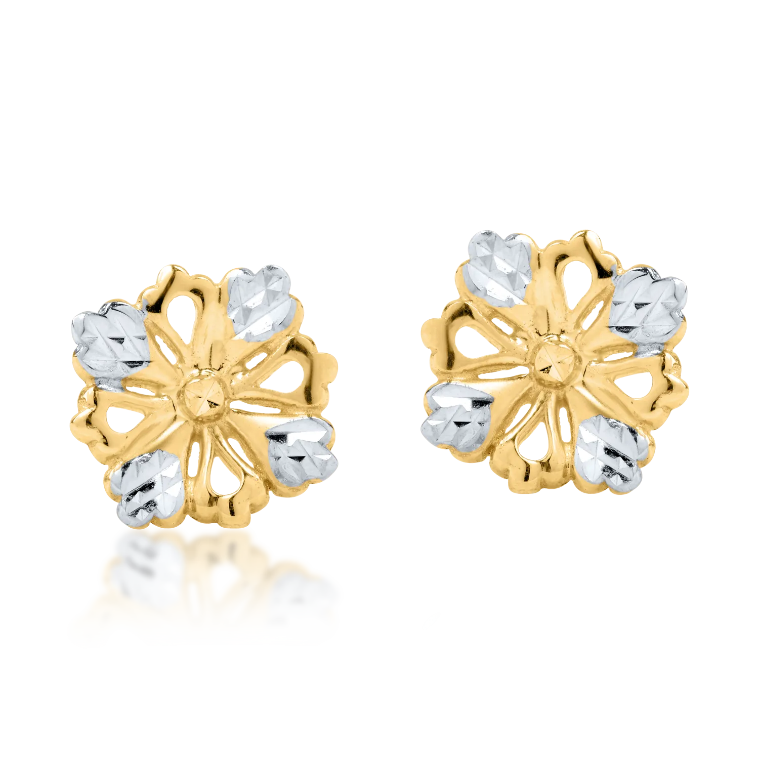 Descopera bijuteriile care iti descriu personalitatea si iti dau incredere in tine. Perechea de cercei floare din aur alb-galben defineste un mod inedit de a impartasi pasiunea pentru eleganta. TEILOR - o lume in care dragostea pentru frumos este o sursa de inspiratie.