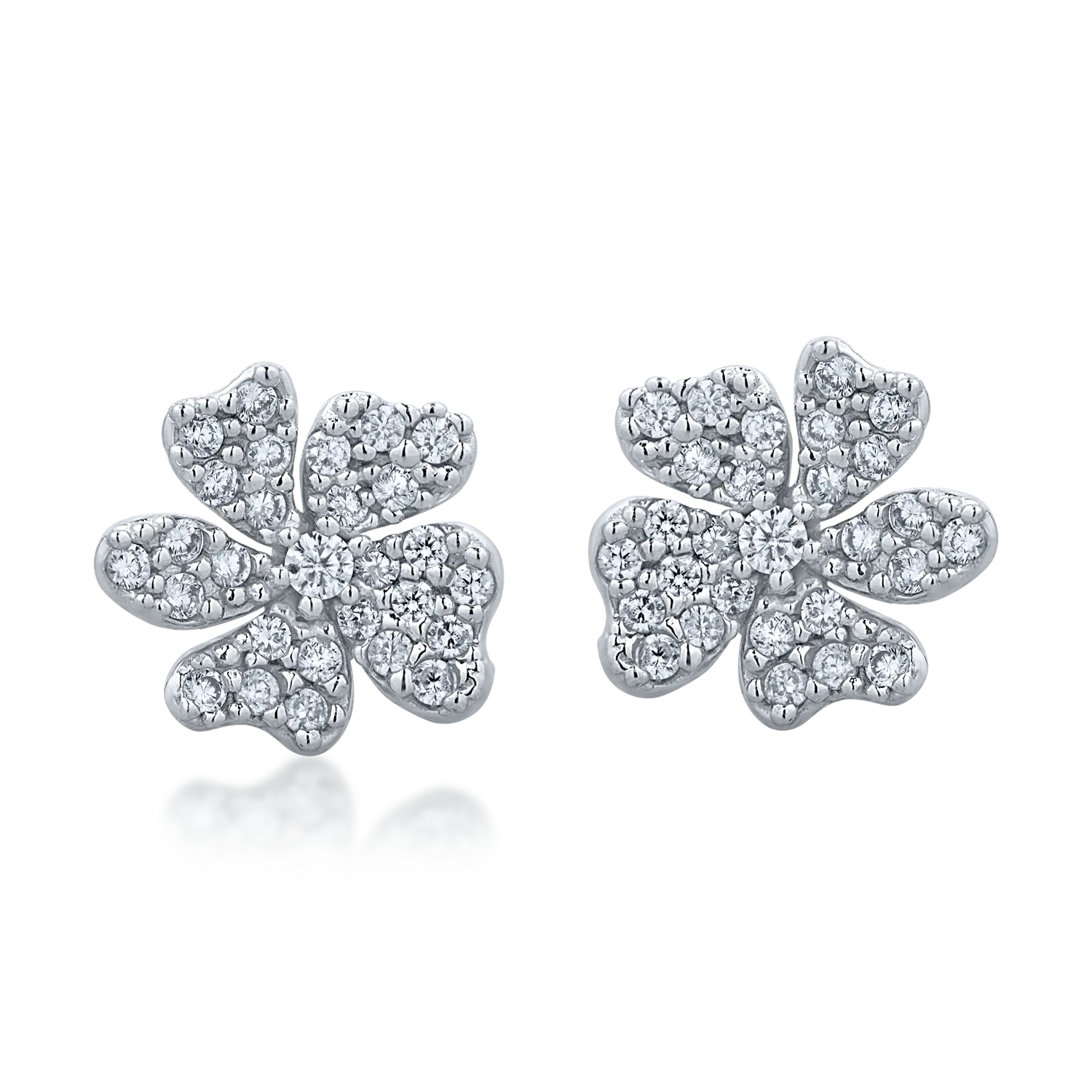 Descopera bijuteriile care iti descriu personalitatea si iti dau incredere in tine. Cerceii floare din aur alb stralucesc intr-un joc hipnotizant de nuante, intensificat de fiecare raza de lumina. Completeaza orice tinuta si vorbeste despre latura ta feminina. In fiecare zi. Cu fiecare pas.