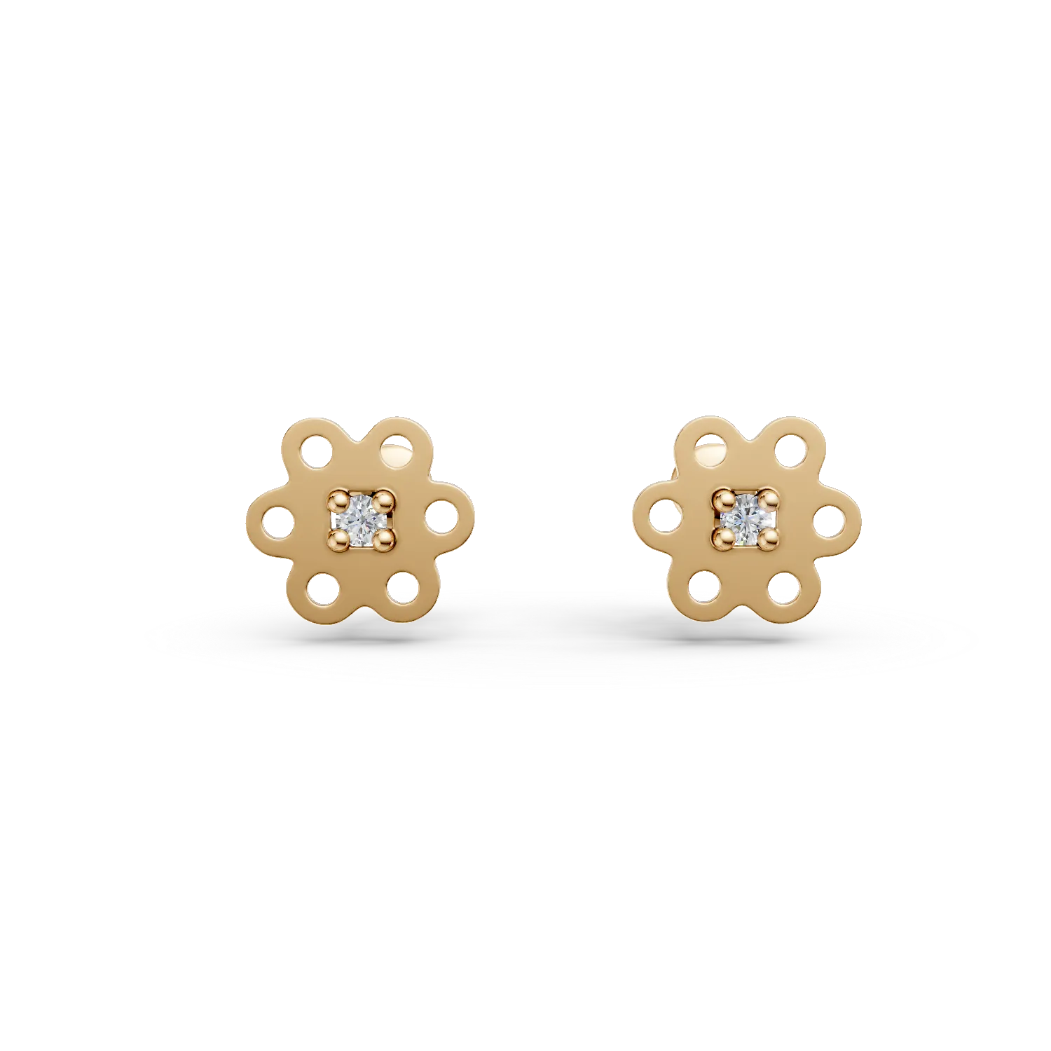 Ofera bucuria primei bijuterii cu piesele care completeaza tinutele colorate. Creata pentru a capta emotii, perechea de cercei floare din aur galben cu diamante de 0.04ct pentru copii ii transforma in personaje principale ale propriilor povesti. TEILOR adauga copilariei cele mai frumoase detalii.
