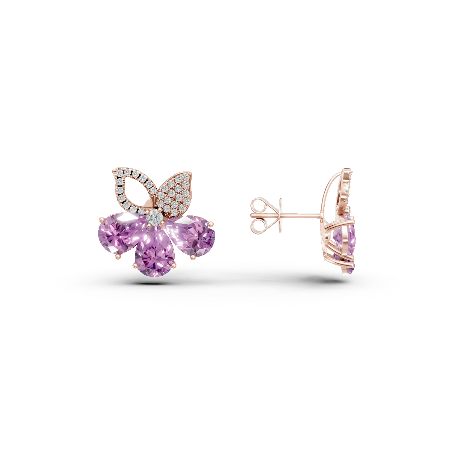 Eleganta devine cheia succesului in cautarea accesoriilor perfecte. Alege sa porti acesti cercei floare din aur roz cu ametiste de 5.9ct si diamante de 0.4ct, care vor aduce o nota de prospetime si inedit in fiecare tinuta. Stralucirea lor, completata de taieturile fine, transforma fiecare aparitie intr-un spectacol al rafinamentului.