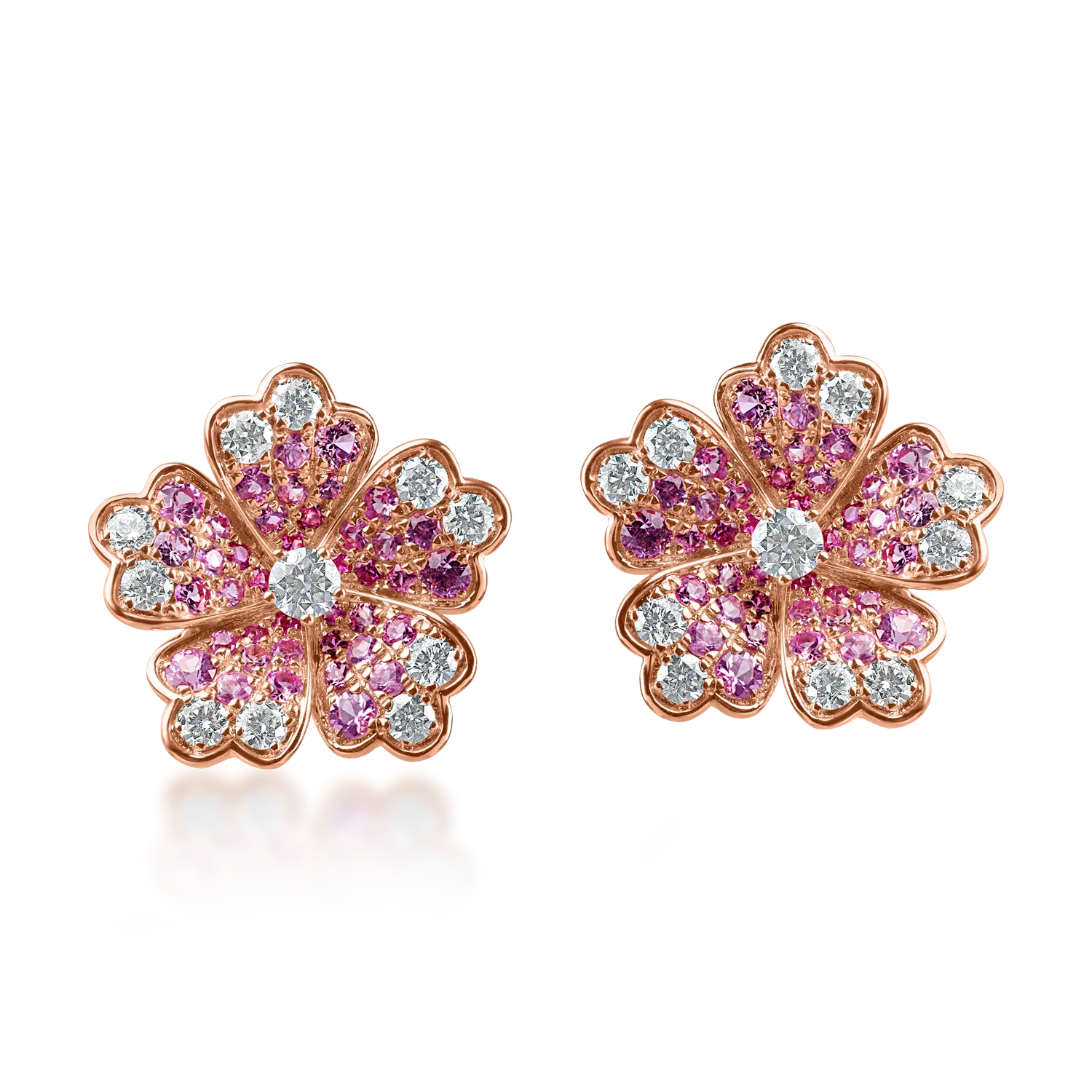 Cercei floare din aur roz cu diamante de 0.6ct si safire roz de 1.1ct
