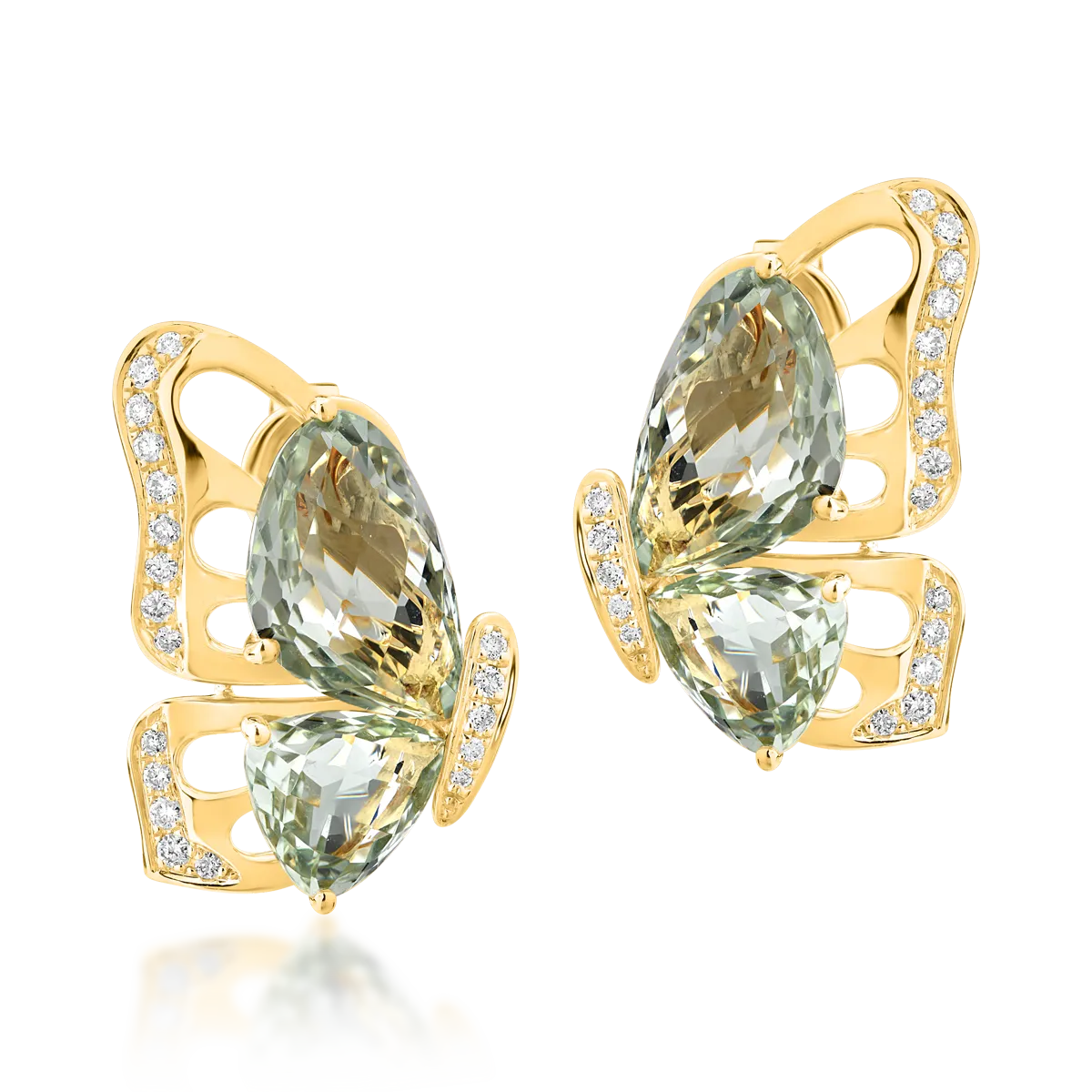 Povestea ta incepe cu o bijuterie seducatoare. Cucereste momente. Pastreaza amintiri. Poarta si ofera din dragoste aceasta pereche de cercei fluture din aur galben cu ametiste verzi de 7.7ct. si diamante de 0.28ct. TEILOR vorbeste despre emotia fiecarei clipe.