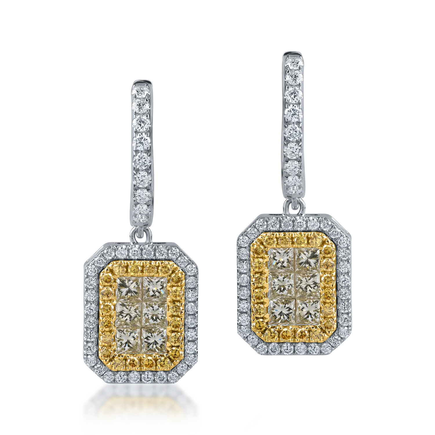 Descopera bijuteriile care iti descriu personalitatea si iti dau incredere in tine. Perechea de cercei geometrici din aur alb-galben cu diamante galbene si incolore de 1.5ct imbina echilibrat stralucirea cu eleganta intr-un design pretios. TEILOR vorbeste despre emotia fiecarei clipe.