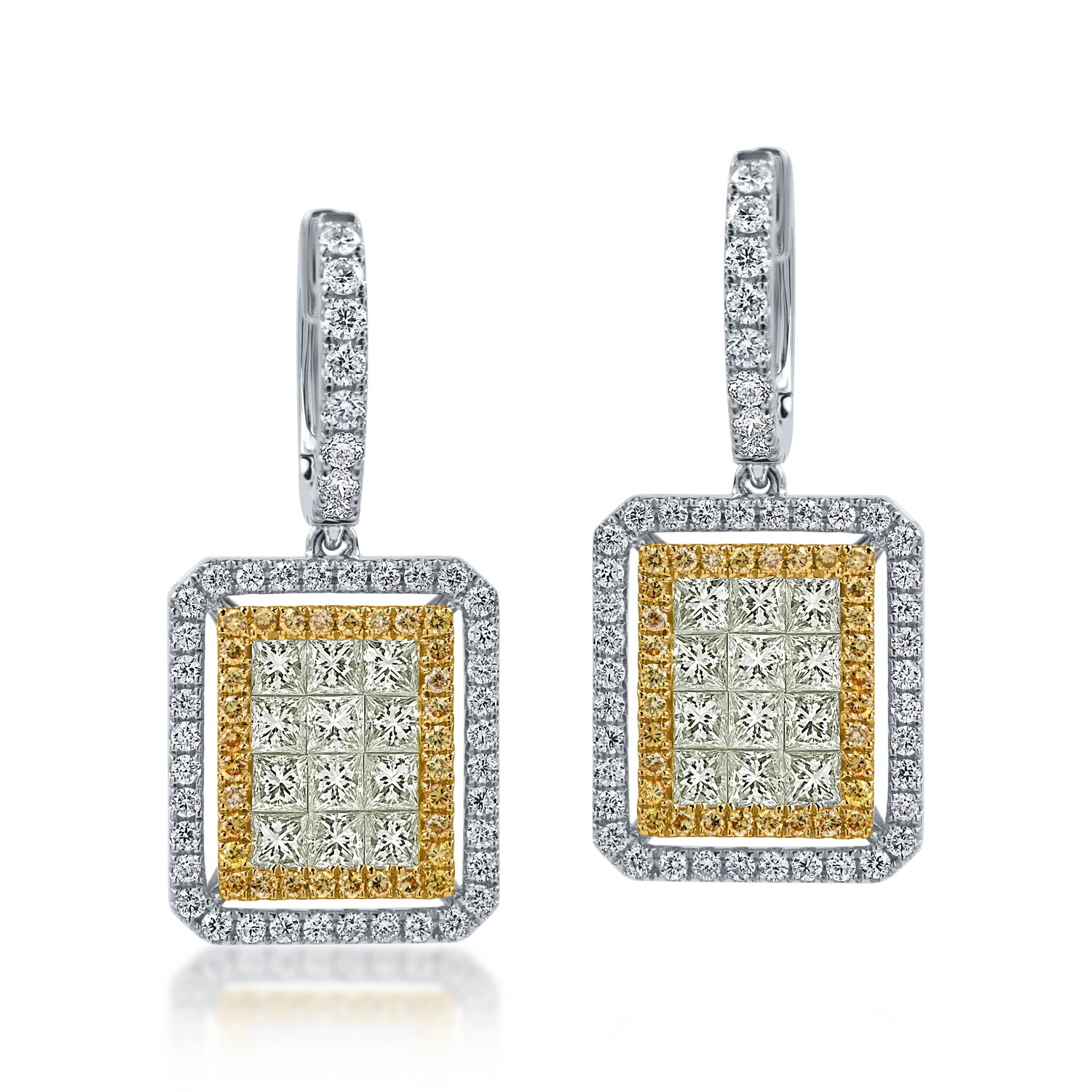 Spectacolul luminii ia forma in cerceii geometrici din aur alb-galben cu diamante galbene si incolore round si princess de 2.6ct. Taieturile princess aduc structura si claritate. Iar diamantele rotunde adauga un echilibru subtil de stralucire. Contrastul dintre tonurile calde si reci ale metalelor accentueaza designul arhitectural, transformand piesa intr-o expresie a elegantei moderne. O bijuterie TEILOR care vorbeste despre puterea rafinamentului. Descopera esenta elegantei la TEILOR si poarta frumusetea care te reprezinta.