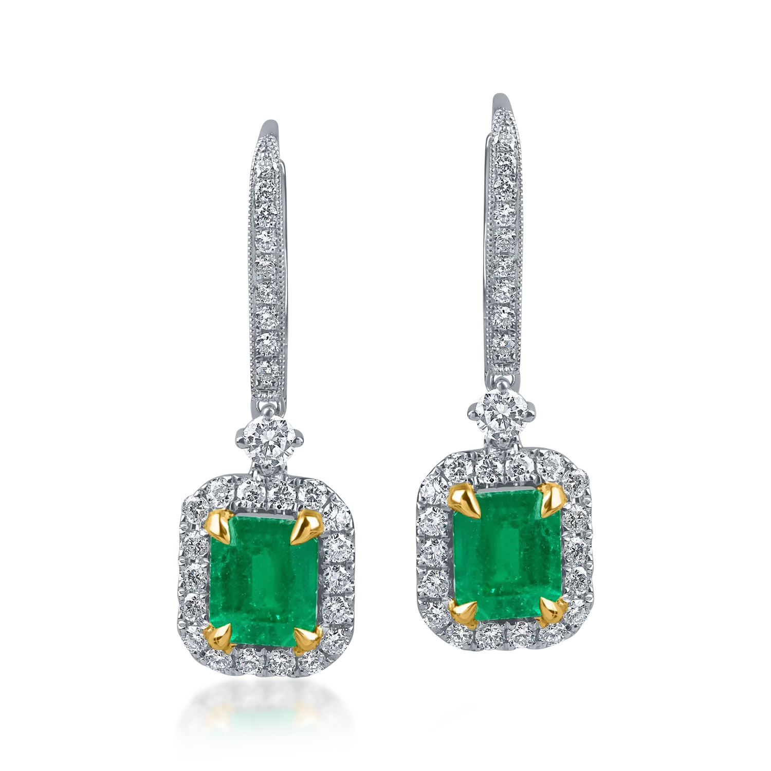 Cerceii geometrici din aur alb-galben cu smaralde emerald si diamante round de 2.3ct impresioneaza prin arhitectura lor moderna si rafinamentul contrastelor. Taietura emerald a smaraldelor evidentiaza perfect nuantele adanci de verde, creand un efect optic sofisticat, in timp ce diamantele rotunde adauga un plus de lumina si fluiditate. Combinatia dintre aurul alb si cel galben aduce echilibru si dinamism, transformand bijuteria intr-o piesa de arta contemporana. TEILOR celebreaza prin acest design armonia dintre geometrie, culoare si eleganta atemporala.