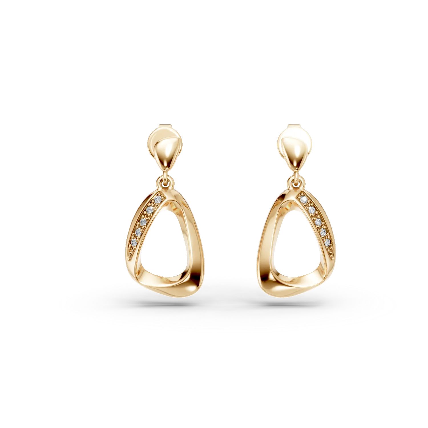 Cercei geometrici din aur galben cu diamante de 0.04ct