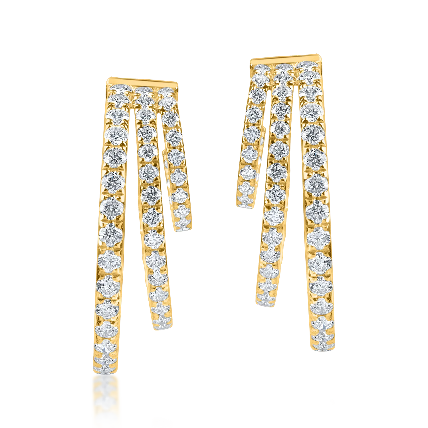 Imbratiseaza frumusetea cu bijuterii care iti reflecta personalitatea. Fiecare clipire aduce cu sine o noua oportunitate de a straluci. Cerceii geometrici din aur galben cu diamante de 2.5ct sunt aliatul perfect pentru a-ti completa look-ul.